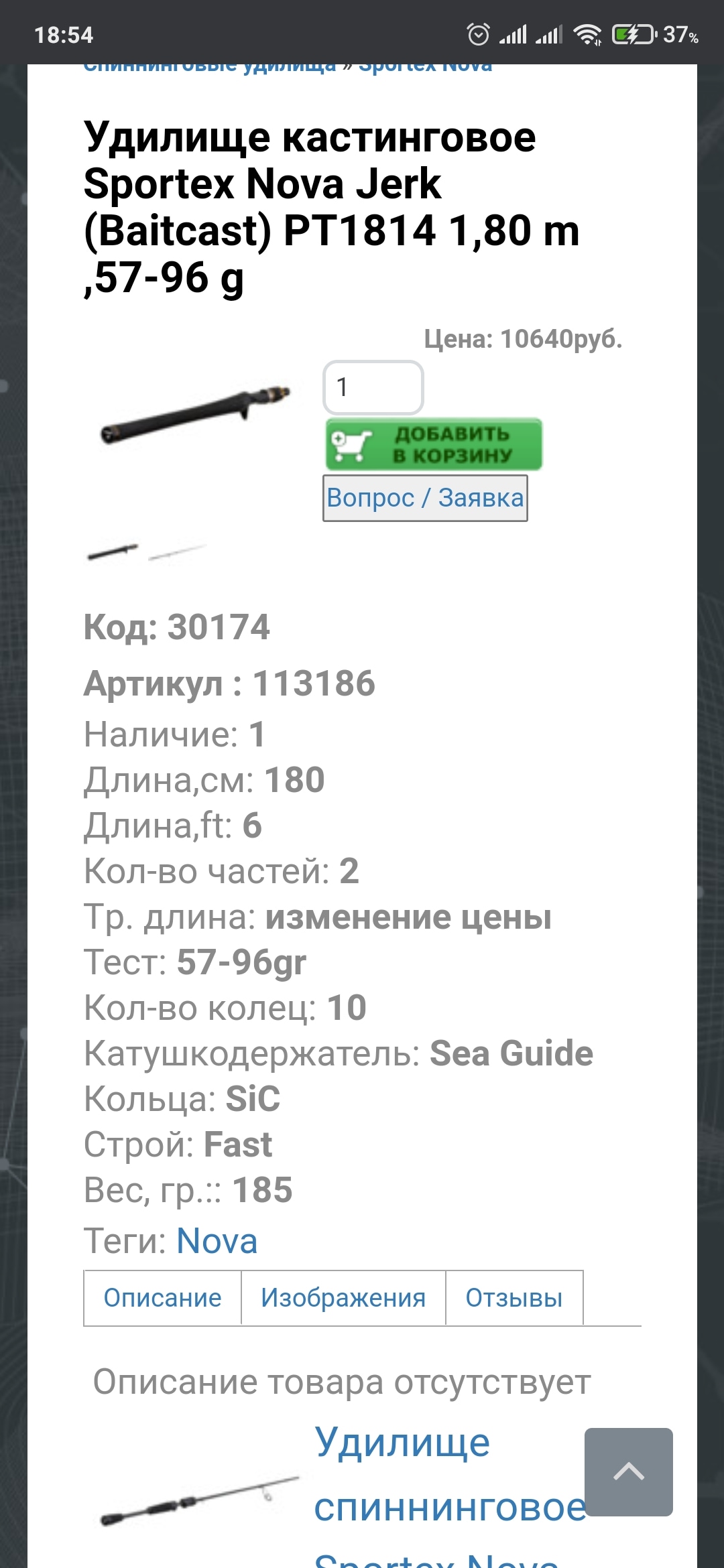 Удилище кастинговое Sportex Nova Jerk (Baitcast) PT1814 1,80 m ,57-96 g несколько рыбалок состояние нового не зашла мультовая снасть .Цена 7000р.Возможен обмен на спиннинг под безынерционную катушку с большим тестом для джерков.