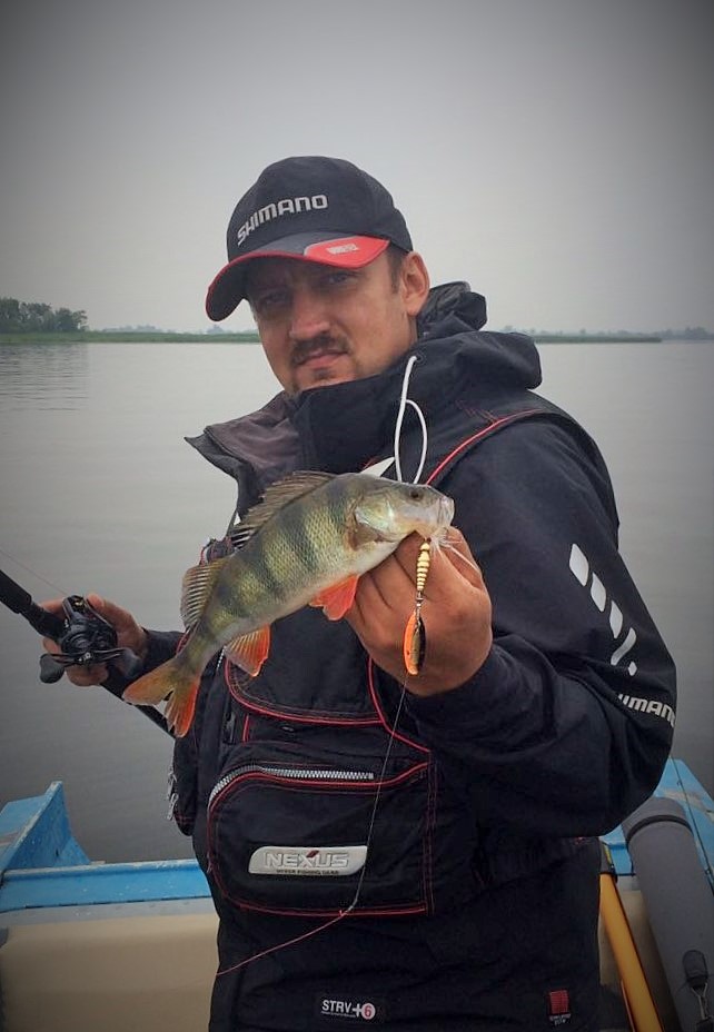 Наконец то решился выйти на воду апосля Северов. Так себе решеньице... Вода 23-24 градуса, цветет + слом погоды (с +30... до +18). С утра было довольно активно, хотя и не трофейно, щуканы кушали 130 вобы и 5-6 дюймовую резину... А вот послеобеденную рыблю спасали приманки 2.8 дюйма... Запоминающимся день стал благодаря котловому окуню и вращалке Bug Wing от Страйк Про.