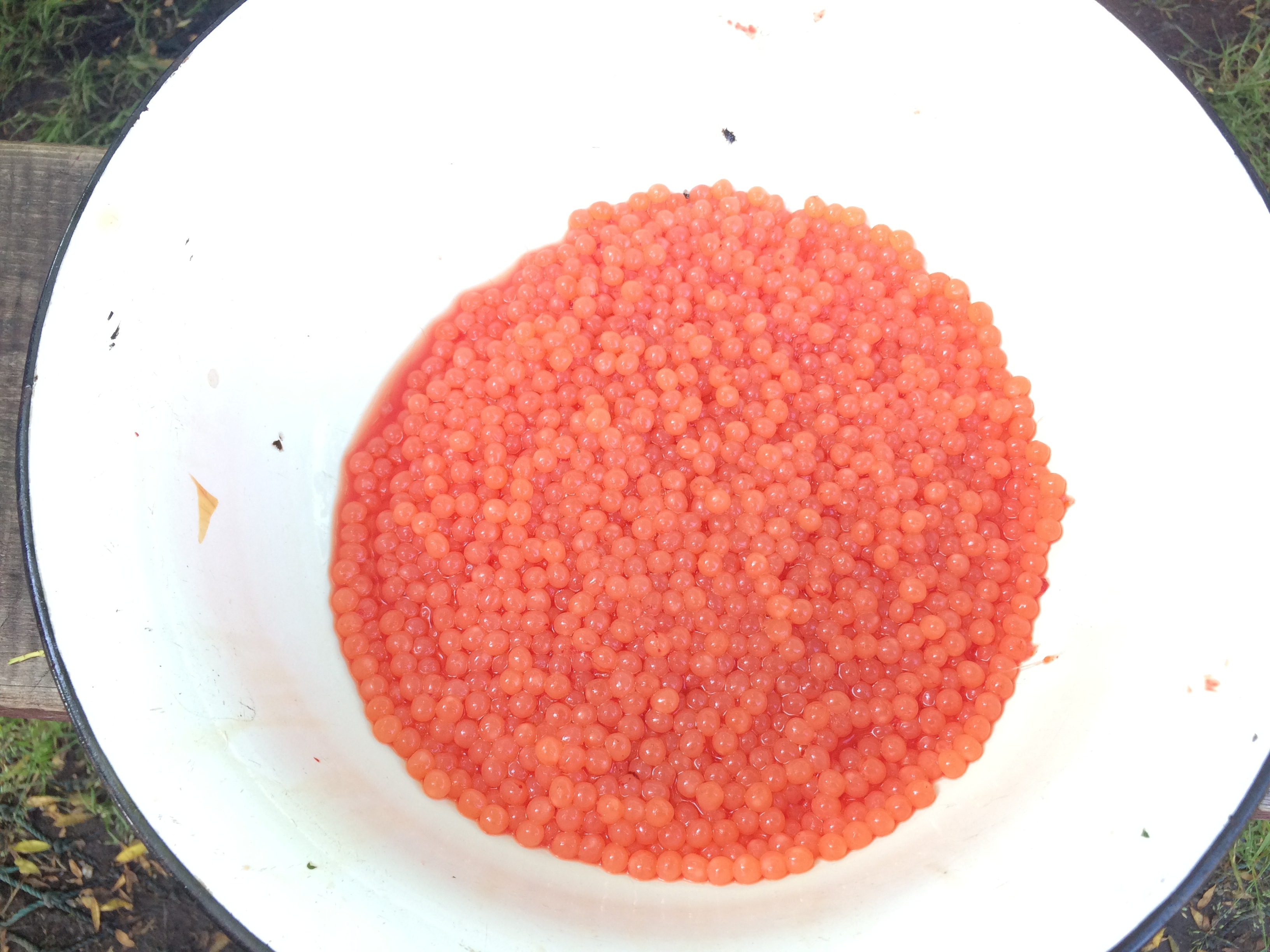 Ловилась хорошая кета - средний вес 5,0 кг. Только зашла с моря - красивая и очень сильная рыба. По приманкам - ловли в основном на железо (к удивлению местных). Отлично показали себя блесна 17-35 гр - Daiwa Crusader, Stinger Phantom, Kuusamo Atlantti. Цвета разные, но лучше кислота+черные точки/полоски.