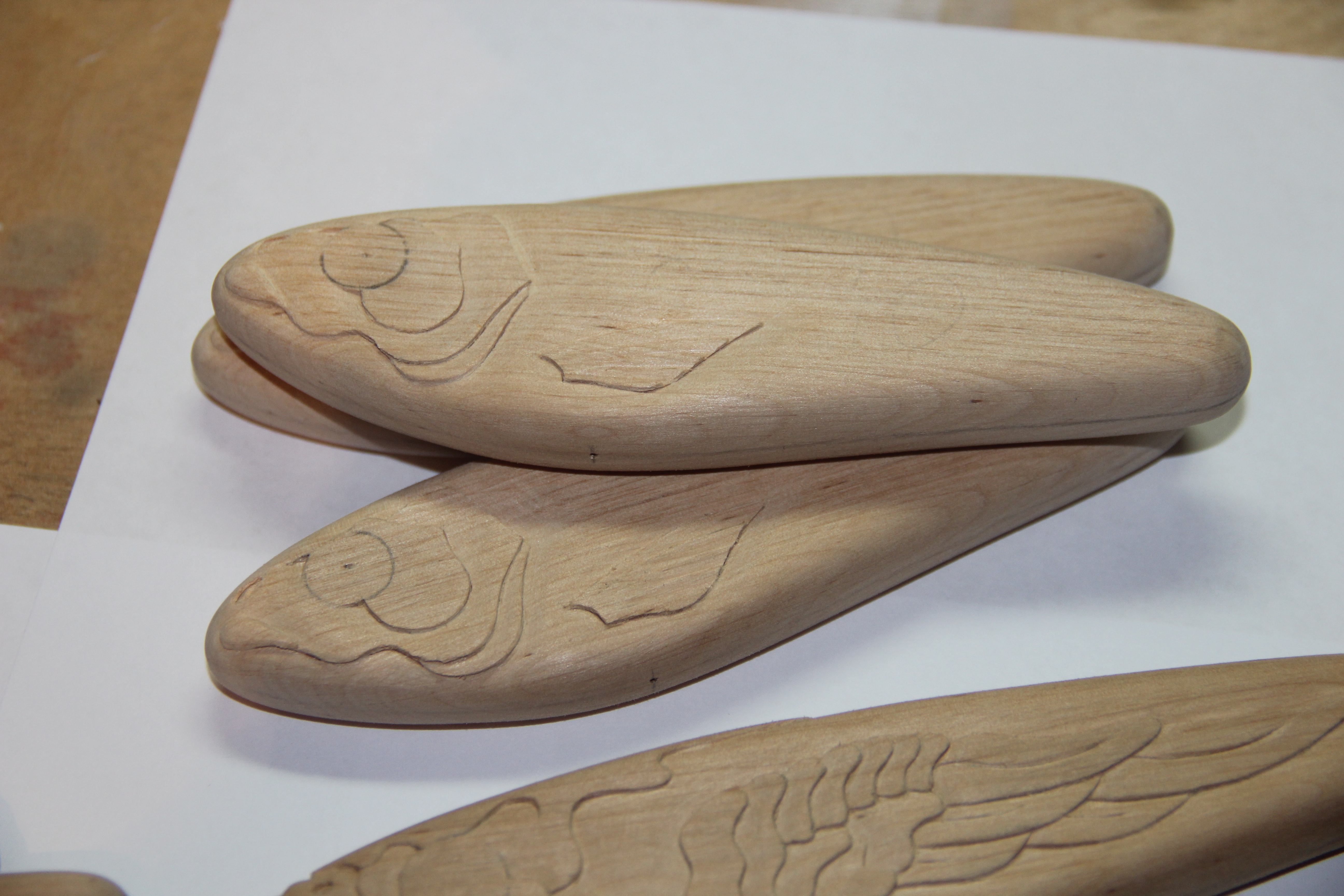 Симпатичные карасики! Работа - резьба ,плюс покраска -супер!