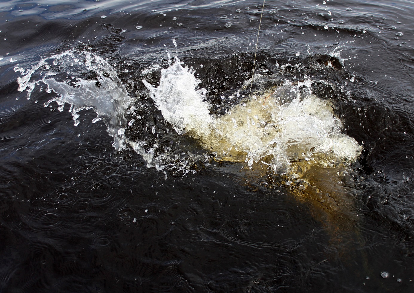 В куче фотографий обнаружил красивую фото-хронологию, от атаки щуки практически у лодки на Classic 17f, до ее возвращения в родную стихию...и так, щука выскакивает слева от лодки, пролетает около семи метров и наперерез с наскока атакует джерк!