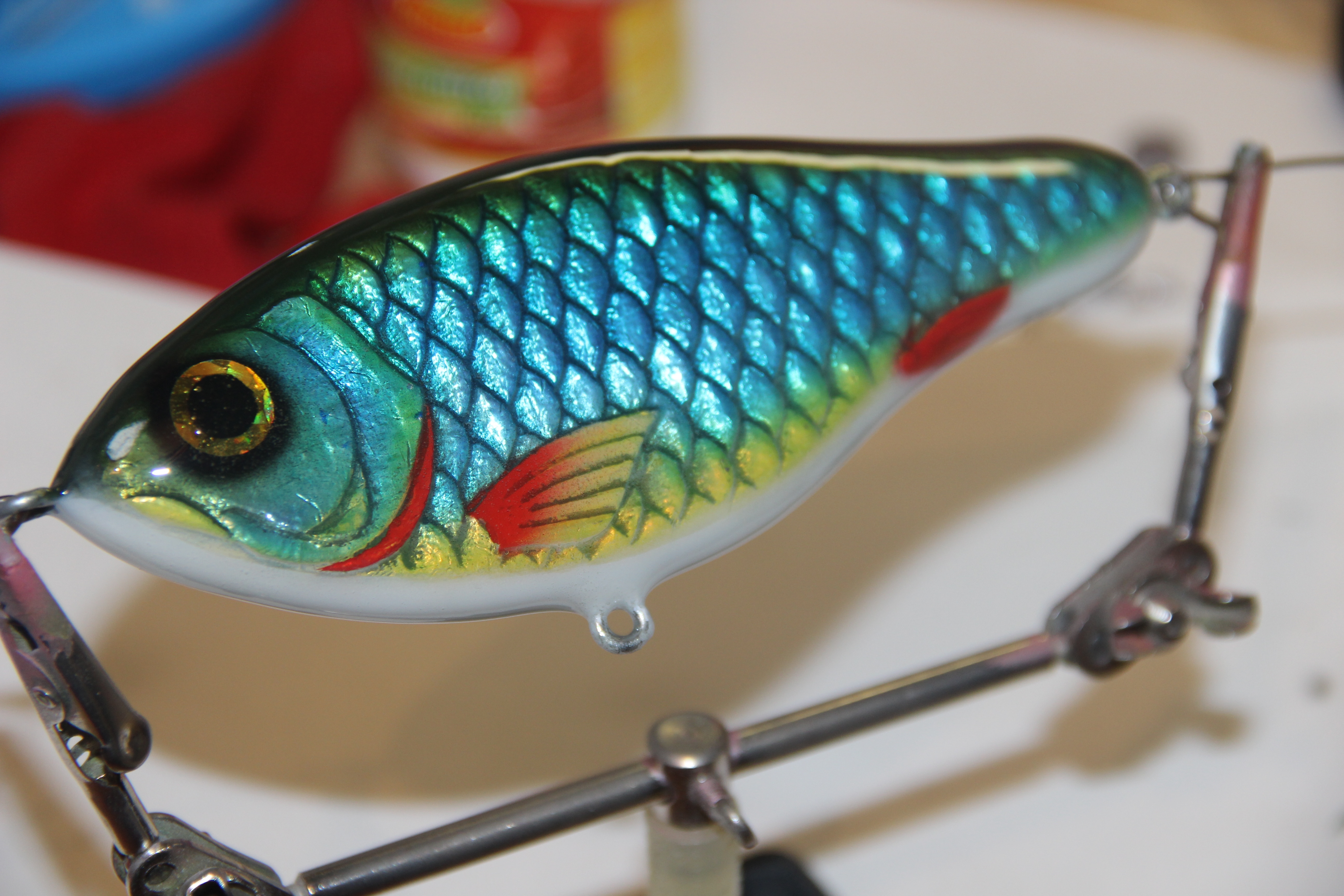 Ещё одна новая тестовая модель 150мм, 81гр, медленно тонущий. С покраской особо не заморачивался опробовал старую идею.