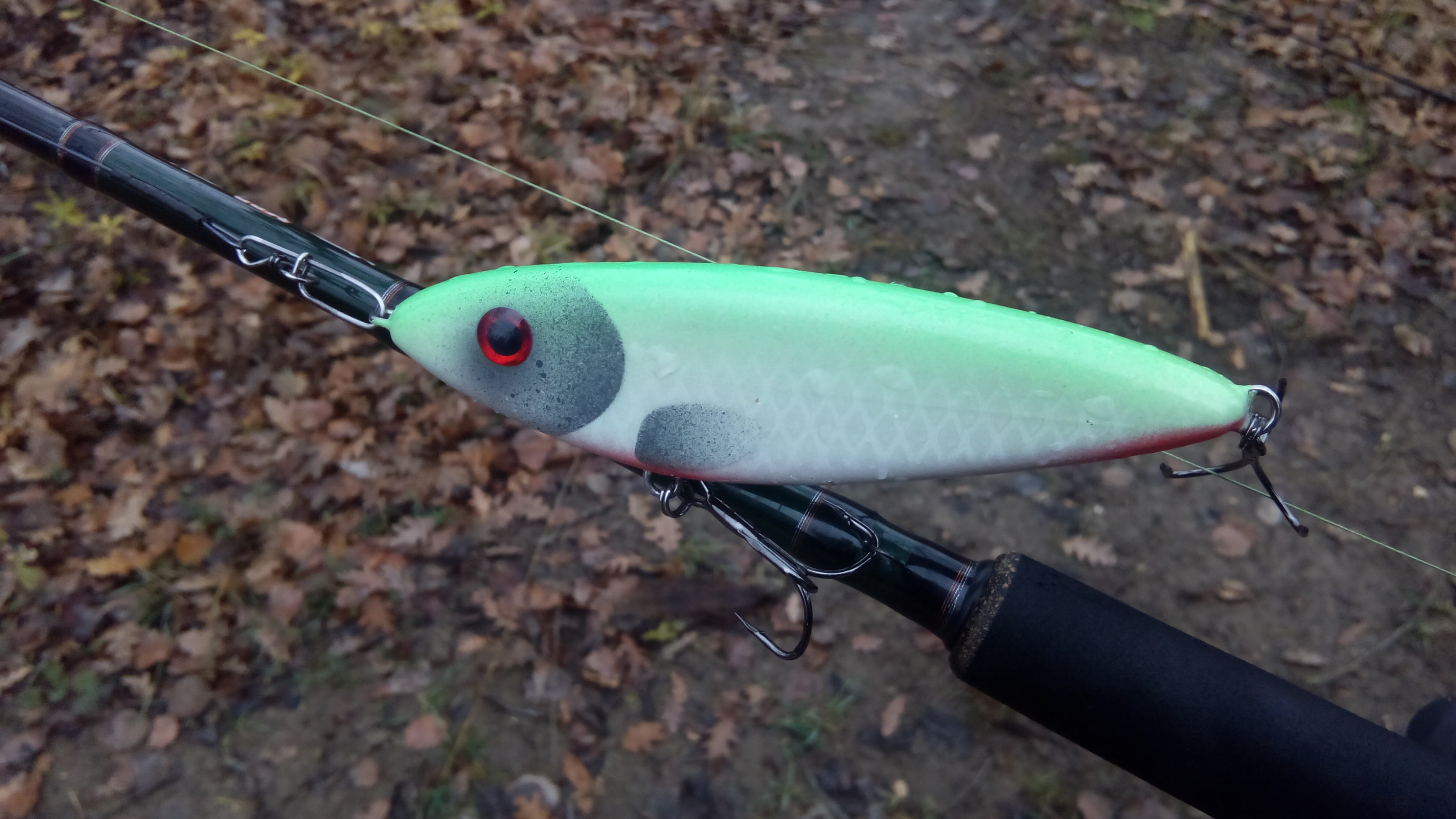 Сегодня погоняли новых буратин, которых мастер сделал на днях. Название для приманки Андрей придумал "Хамсин", материал ольха, медленнотонущий, 140мм. вес 60 гр. На первых же забросах была разловлена Щучкой на 1,5 кг. На мой взгляд приманка интересная, анимируется как катушкой, так и рывками удилища, при резких ударах играет в 3Д, спокойные удары стабильно разворачивается практически на месте. В планах сделать "Хамсина" в размере 170мм.