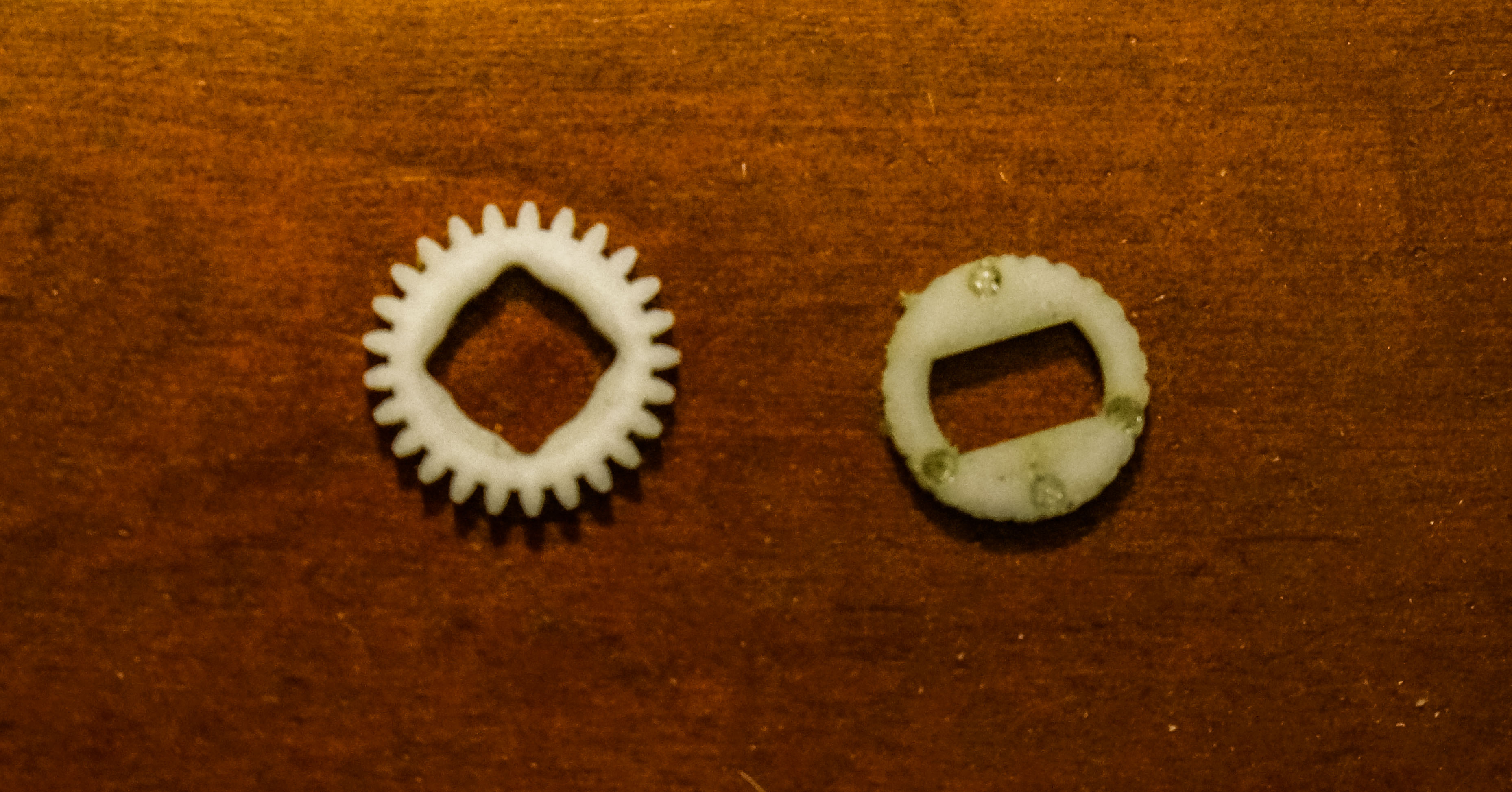 Заказал на плате изношенную пластмассовую шестерёнку. Пришла одинаковая по размеру, но с другим посадочным гнездом!