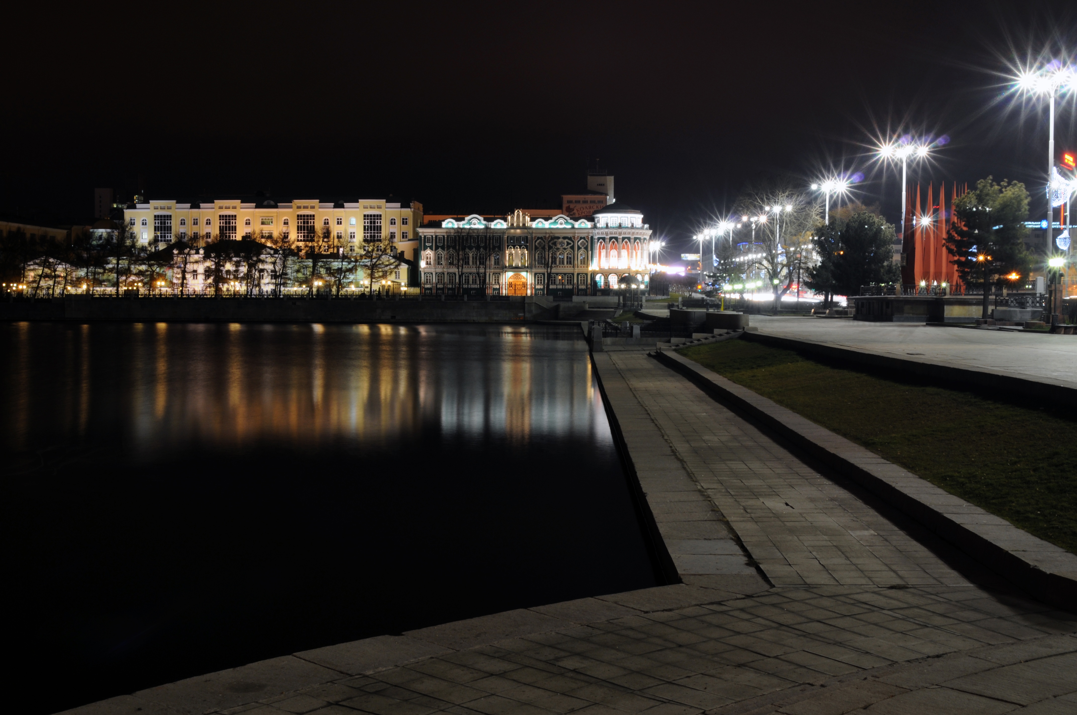 А это ночной Екатеринбург на NIKON D300. Камера кропнутая, уже старенькая и не профессиональная.