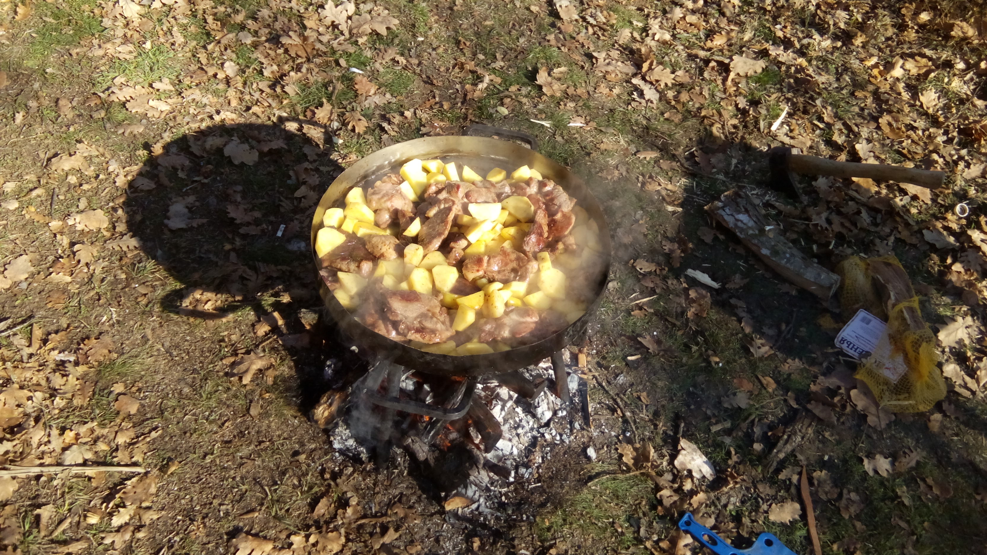 Сковородка самодельная, из пищевой нержавейки, парни Севастопольские привезли. Мы эту идею подглядели, нам тоже такая нужна в тусовку. Серега у нас сварщиком работает, сказал, что точно такую же сделает. По готовности выложу фотки, ну и все подробности про нее. Очень удобная вещь.