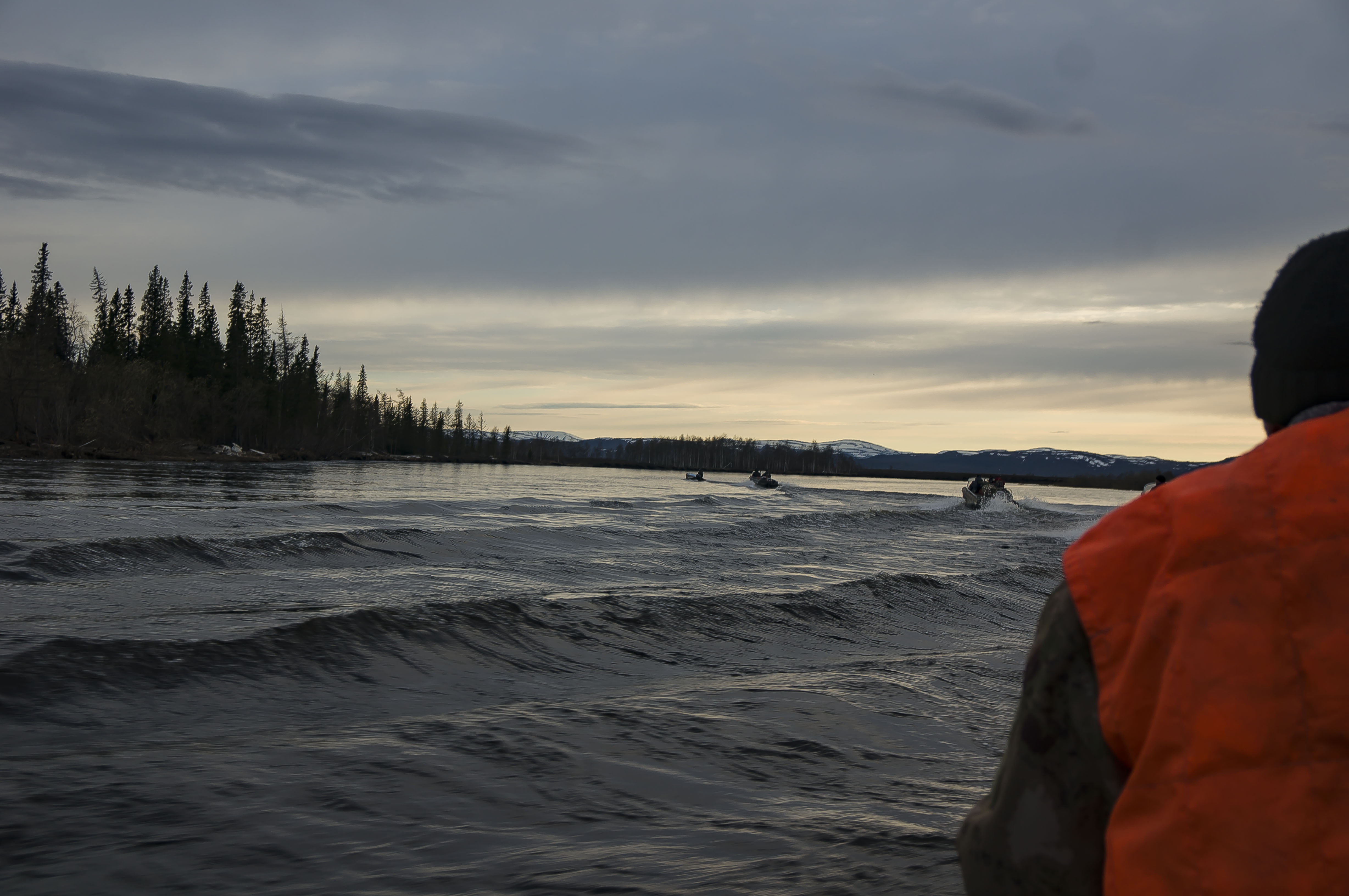 Под вечер слышали как по соседней реке об лёд безрезультатно долбились катера нашей второй уральской группы, а под утро с радостью приняли их в свои объятья. Ловушка закрылась, но мы хоть вместе.