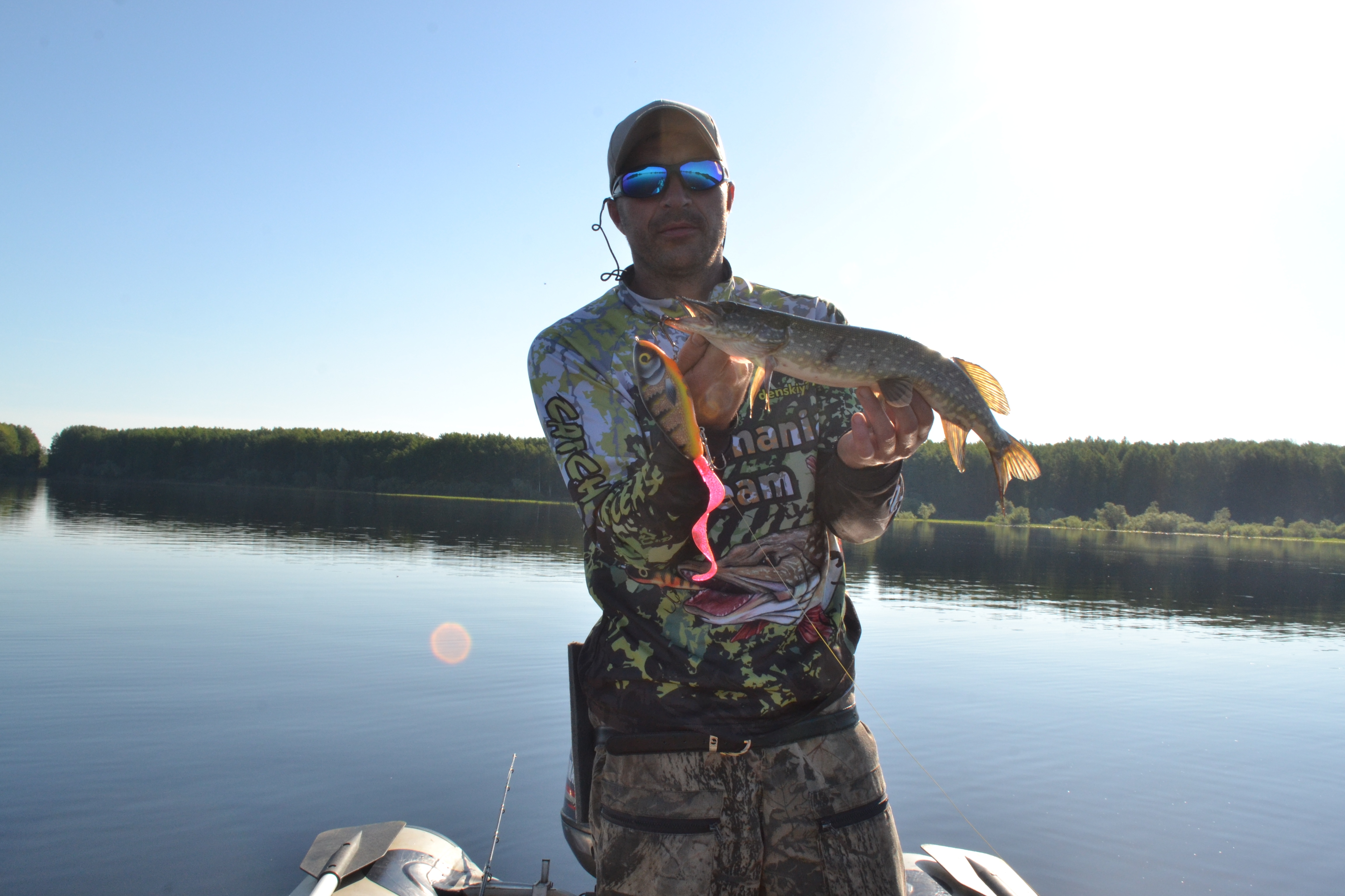 Выспавшись, поев, и выпив чашечку кофе с молоком, я с папой выплыли рыбачить, не прошло и 15 минут как я обловил подарочного джерка (Петр еще раз спасибо) И после этой щуки до обеда было еще пару поклевок, но они не принесли самих щук, зато у папы хорошо поклевало.