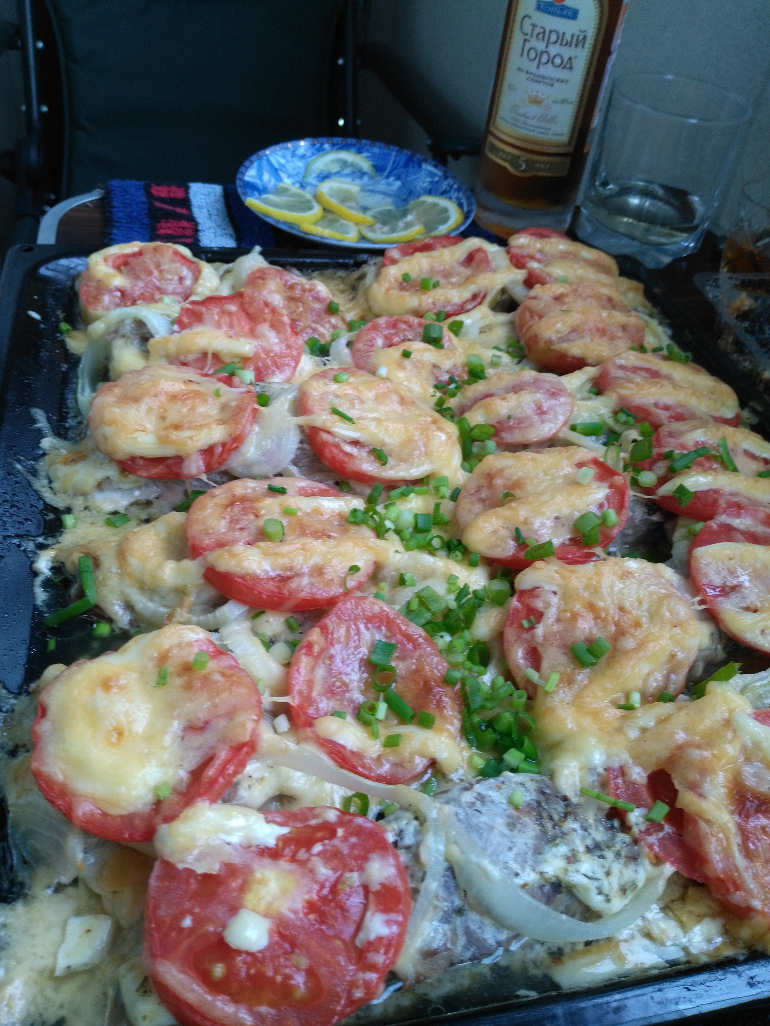 вот вот Виталя запеченная в сыре да помидорчики домашние я на балконьчике и отужинал -это вещьч.. укосно советую.