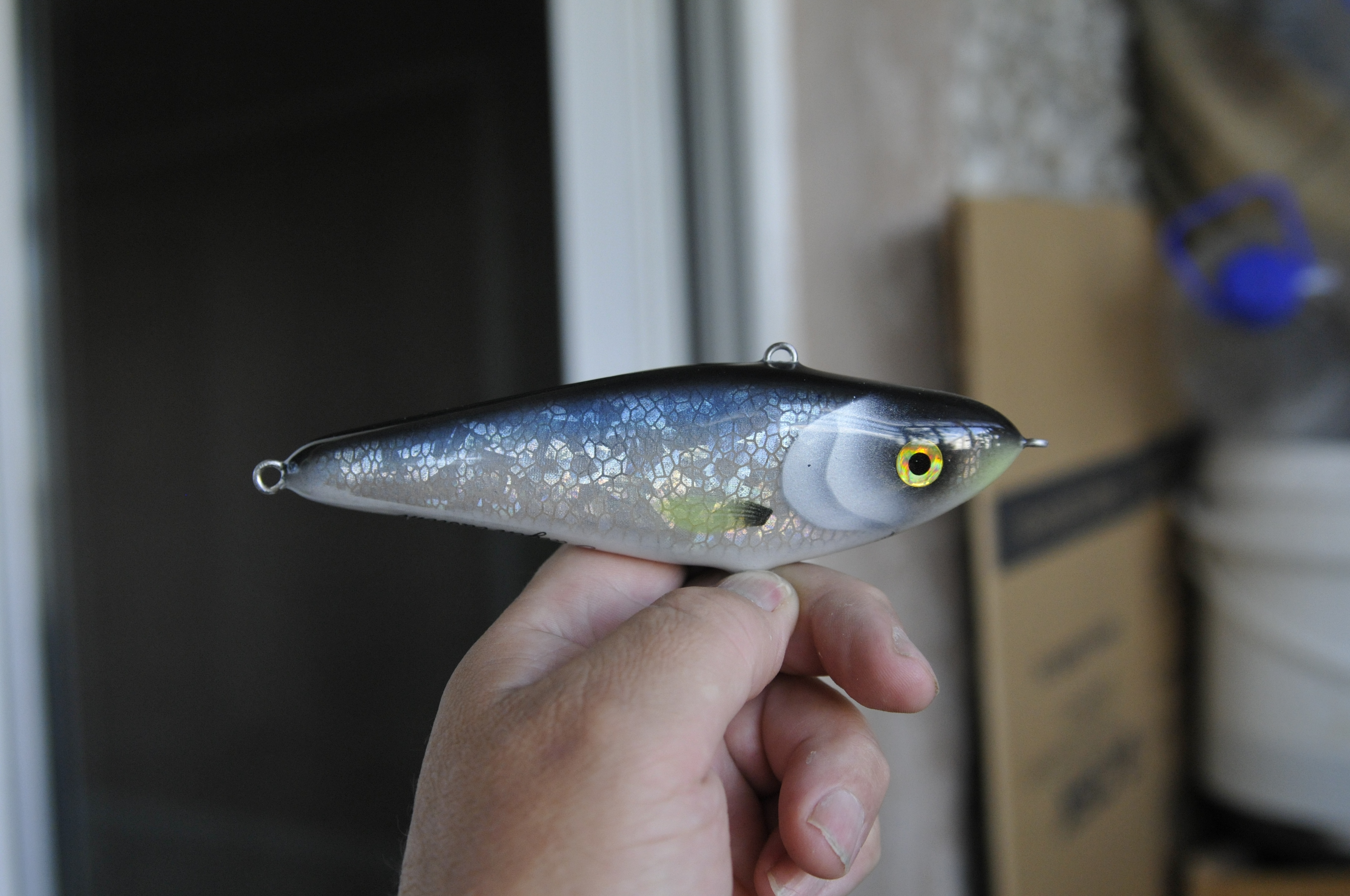 Первый был сделан 110грамовый. Ездил со мной на Иртыш только ещё не крашенным. Рыба была вся в траве поэтому половить на него не удалось. Испытал на глубинах до 4х метров. Понял что его рабочий горизонт гораздо глубже. Тонет как камень