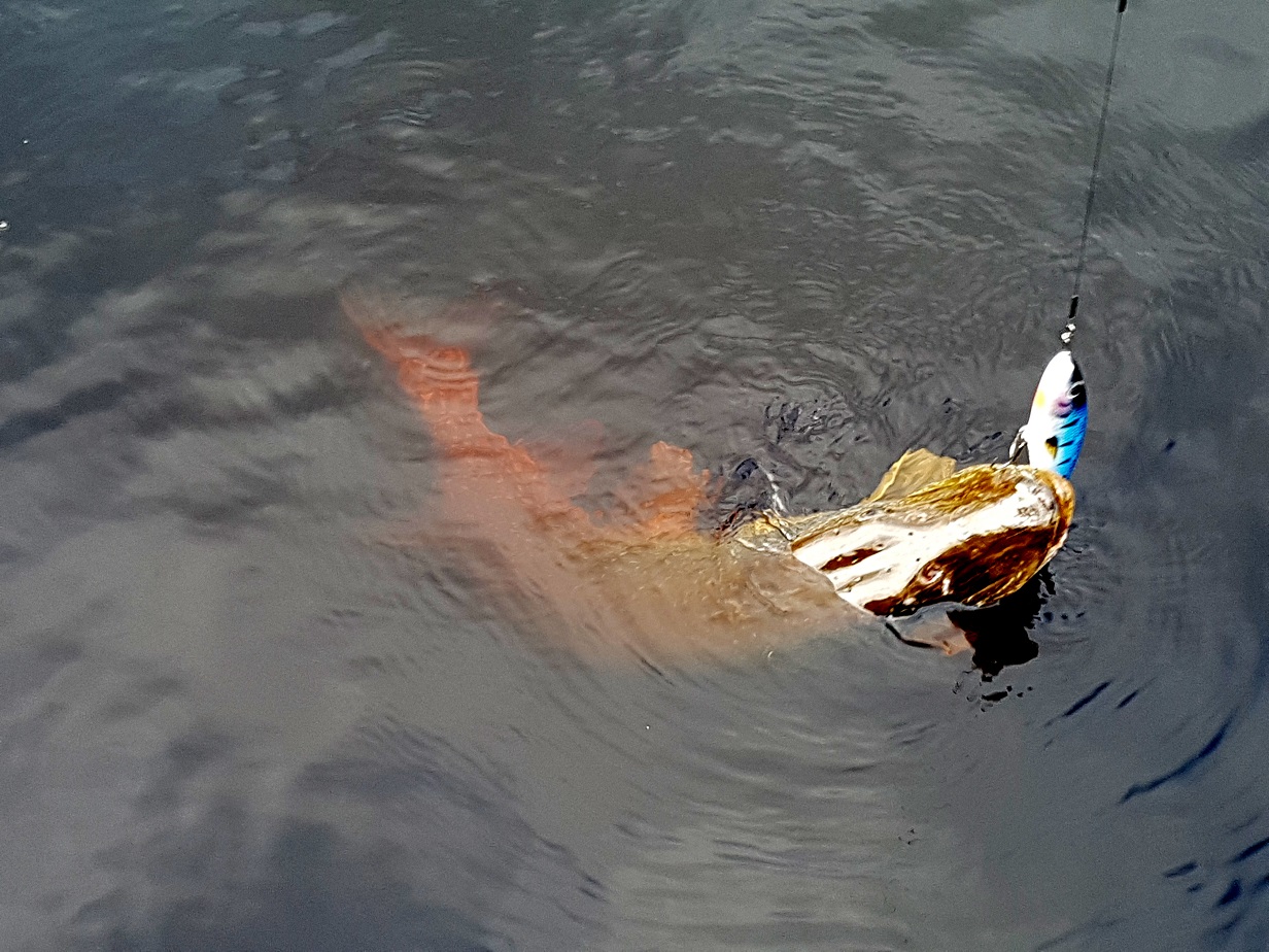 Разловил полностью серию дайверов Salamander. Не большие щучки ловились на Diver Salamander 180 Fins Tail и Diver Salamander Classic под затопленными береговыми кустами с глубинами от 1-1.5 м, что удивило их не остановила достаточно холодная вода +4С, джерки хапали жадно порой преследуя делая заходы для атаки. Проводка мягкими двумя/тремя потяжками с паузой на всплытие не давая до конца выйти приманке на поверхность. Хвостатый подгружал 10гр, заглублялся он на 30-40см, Классик без груза легко заходил 60-70см. Интересные возможности обнаружились у дайверов по применению, случайно метнул Salamander 180 Paddle Tail в старую траву и думал что усё, приехали, но аккуратно мотая шнур дайвер хлюпая хвостом благополучно вышел из травы и тут же последовал сильнейший удар приманка подлетела рыба не засеклась. Было еще пару мощных атак но так путного взять не удалось. В общем приманками остался доволен, то что хотелось у Алексея получилось, надо при ловле больше работать с огрузкой и настраивать приманку под определенные условия...