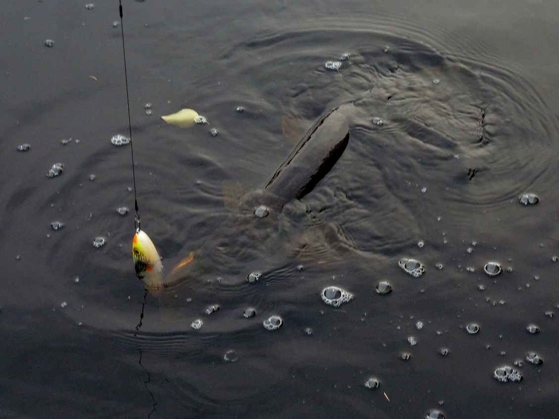 Приветствую! В воскресенье был на заливе. Наблюдал 9 выходов рыбы. Перепробовал джерки, резину. Менял цвет и размер. Перепробовал различные варианты проводки. Провожает до лодки и уходит. Пришлось поставить "смертельное оружие". Продолжительная пауза, легкое касание, подсечка