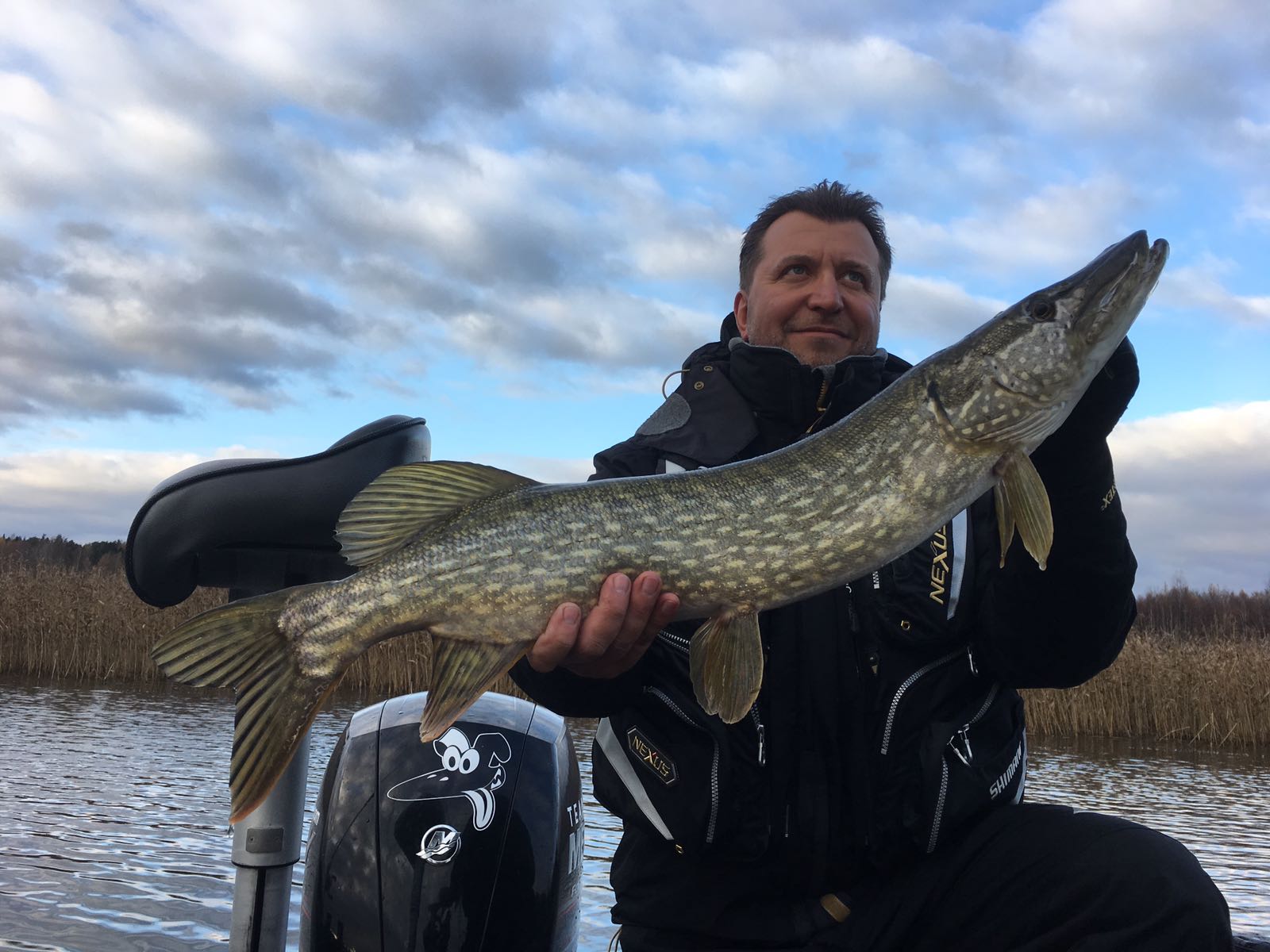 Какая ж башка большая у балтийской щуки... Молодец Саш! У тебе не плохой сезон вроде в этом году :D