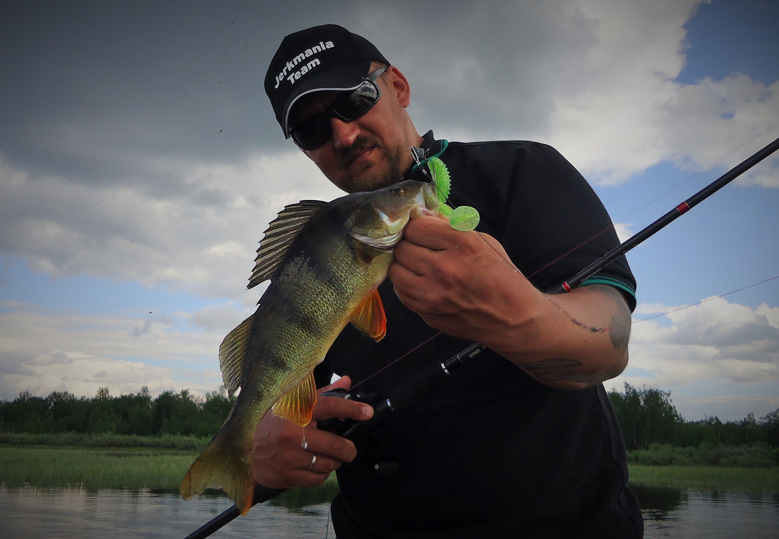 Второй момент - если нет желания ловить окуня целенаправленно, разово можно половить и около-джерковой снастью. Например, я абсолютно комфортно ловил на Волге Шварцем 86 под Луной 253 на резину 3-5 дюймов от 10-15 гр. огрузки. По северным понятиям - окуневый размер силикона, на щуку меньше 6 дюймов никто сознательно юзать не будет. Конечно, никаких волнительных чувств-с даже килошный окунь не доставляет, и вываживать нужно аккуратно, чтобы не порвать губу зверюги, но... на разок норм. Пара нюансов: при забросе нужно сделать свес лески побольше и, когда приманка приводнится, стравить чуток шнура рукой, пока джига не опустится на дно - так дистанция заброса становится поболе на несколько метров.
