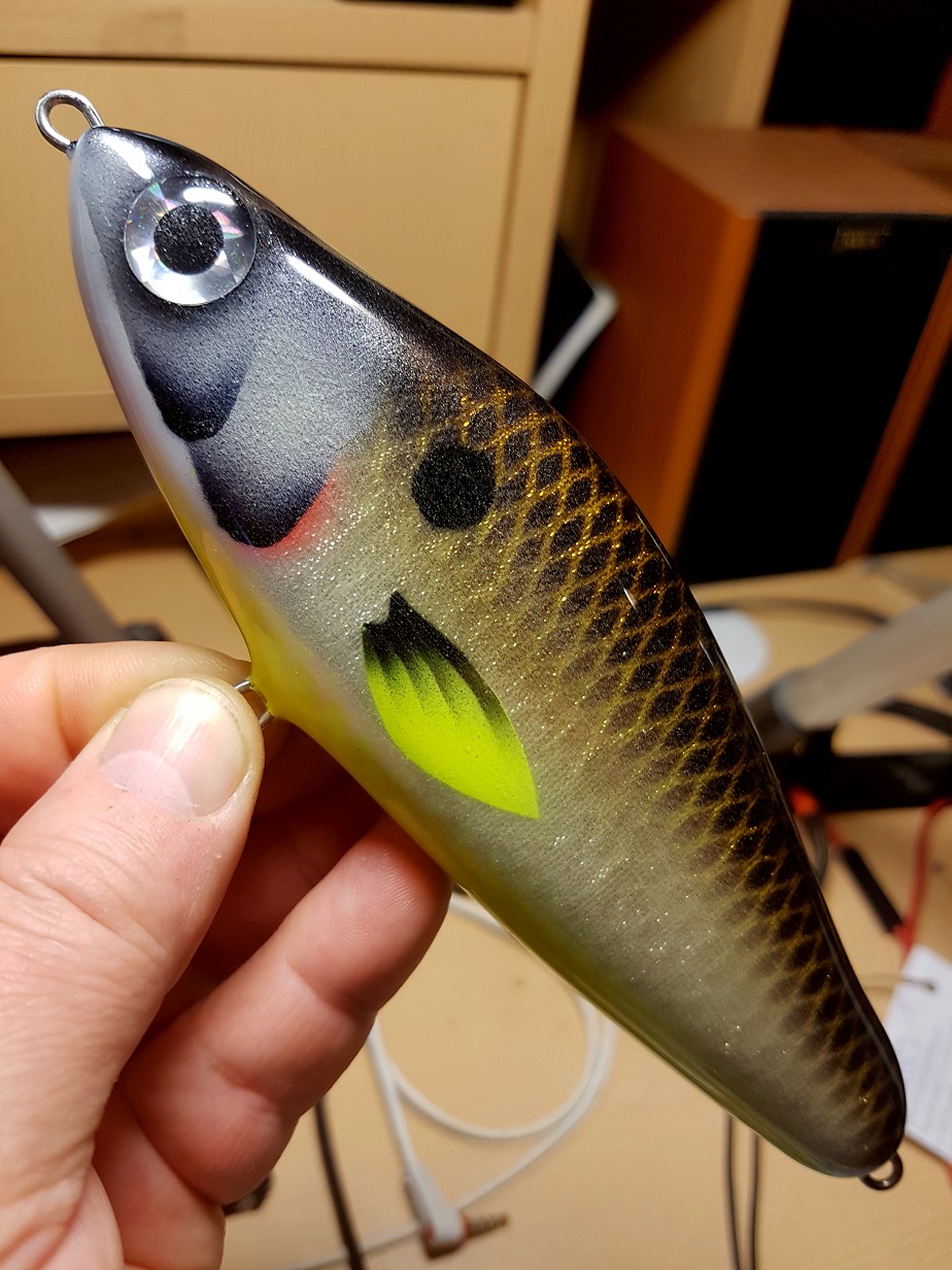 Давняя задумка широкотелой приманки реализовалась в джерк Tango 155см 101-106гр. Шад получился весьма интересным, судя по форме можно было ожидать что будет в лучшем случае среднеход, Однако галсы Танго давал весьма уверенно, и кроме задач будить пассивного хищника на тычках с большими паузами его можно было использовать и как разведчик. Рыб, еще не поймали, потому как в боевых условиях не было возможности, сезон закончился, Но ни чего, в этом будет чем заняться))) На Tango Алексей опробовал целую серию новых расцветок...
