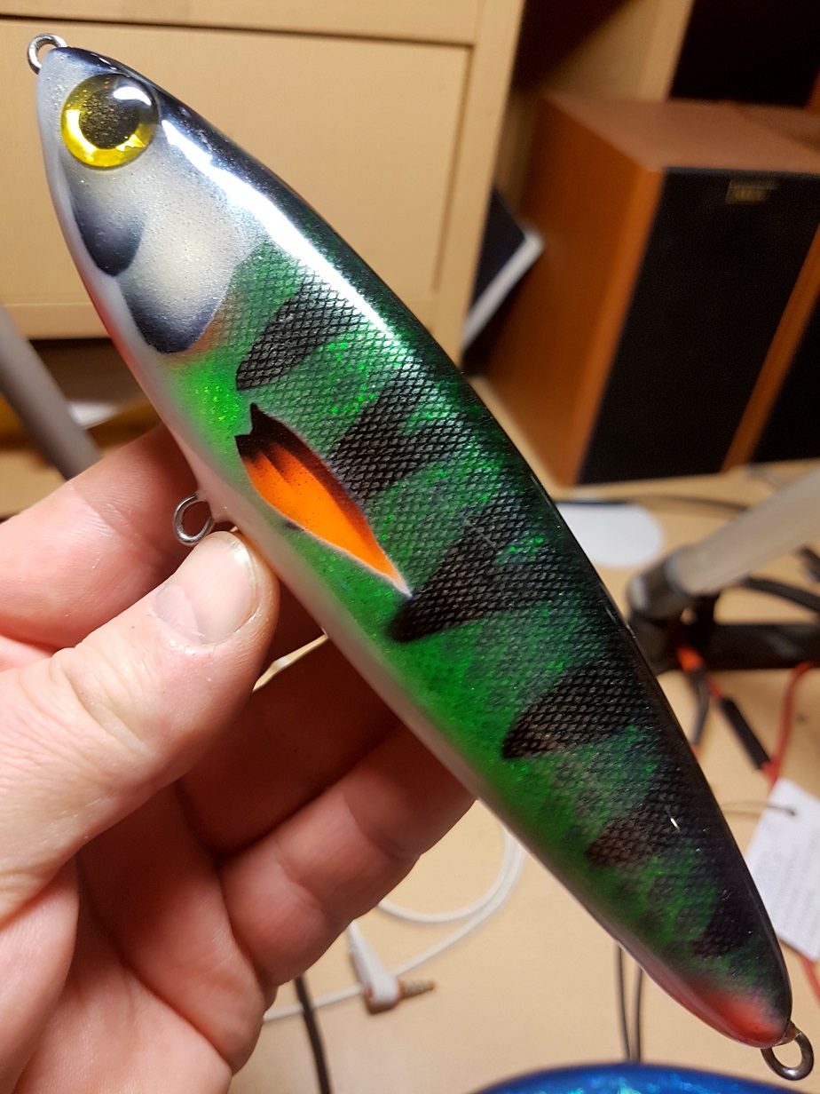 Давняя задумка широкотелой приманки реализовалась в джерк Tango 155см 101-106гр. Шад получился весьма интересным, судя по форме можно было ожидать что будет в лучшем случае среднеход, Однако галсы Танго давал весьма уверенно, и кроме задач будить пассивного хищника на тычках с большими паузами его можно было использовать и как разведчик. Рыб, еще не поймали, потому как в боевых условиях не было возможности, сезон закончился, Но ни чего, в этом будет чем заняться))) На Tango Алексей опробовал целую серию новых расцветок...