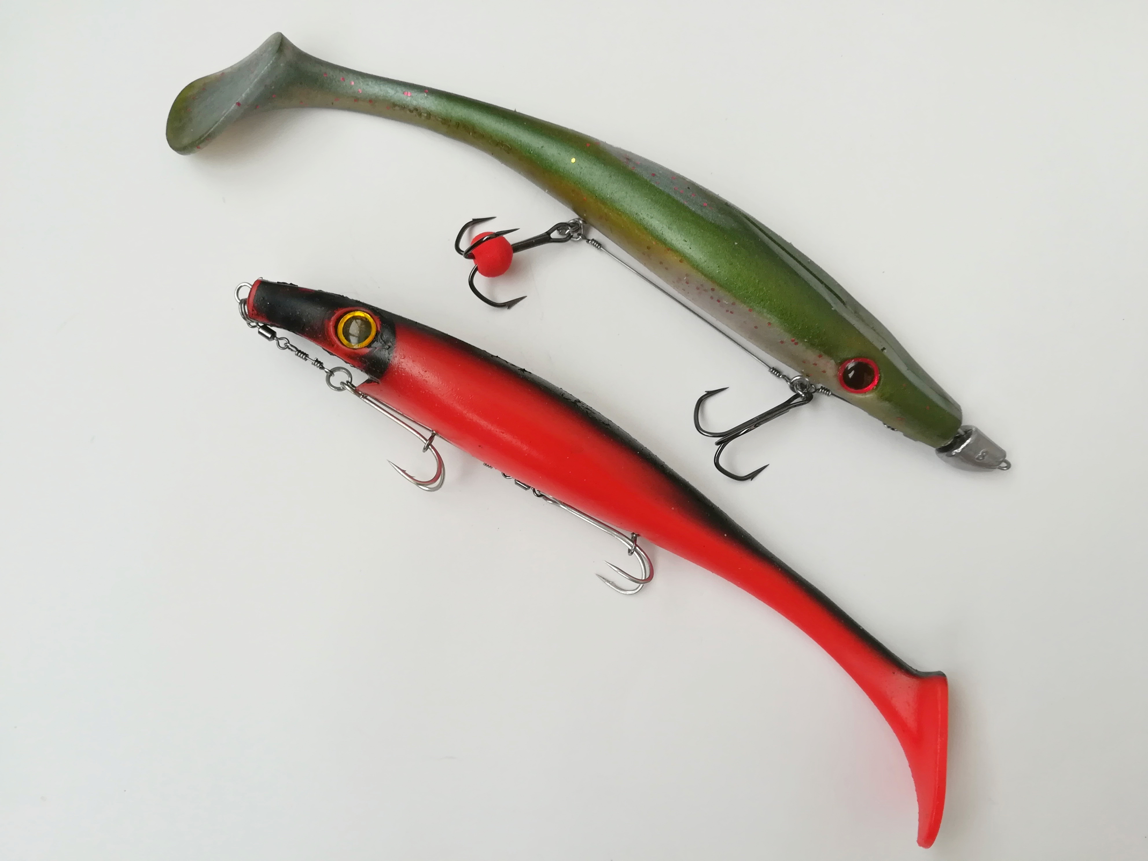 Зы На фото вижу двойные крючки, вопрос зачем они? Засекаемость сразу в минус, ведь ложатся они на бок...проще тройник воткнуть одним жалом не используя шипа и будет тот же двойник только плотно сидящий в корпусе. Такое применение очень часто используется многими рыбаками, особенно когда ловят над травой.