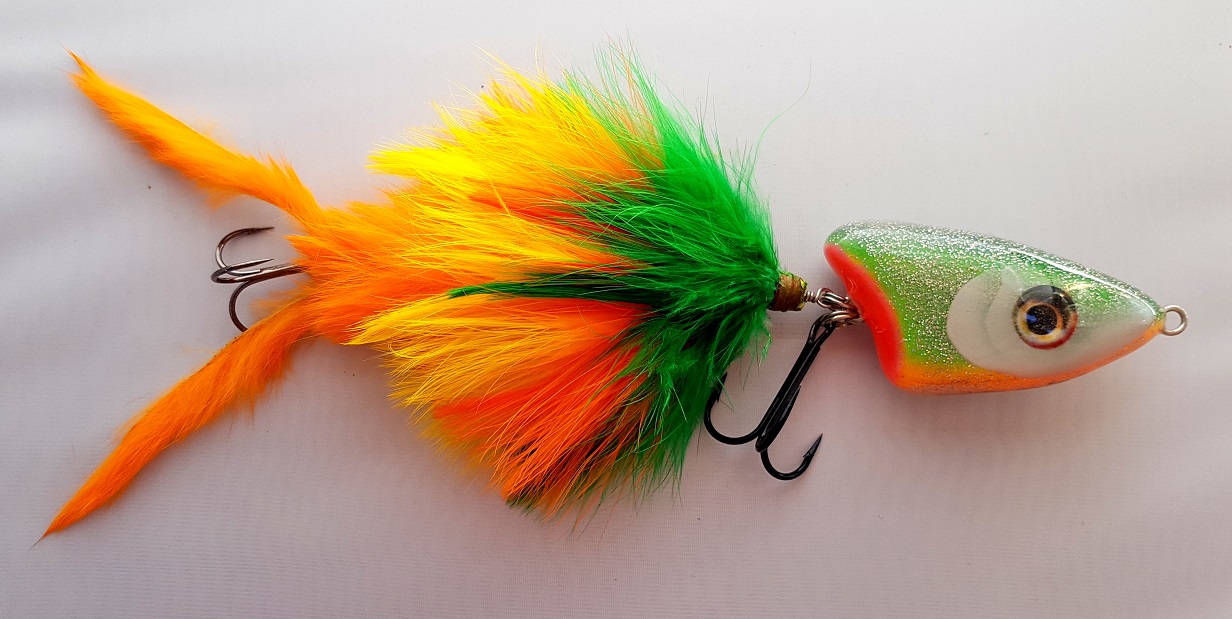 Сегодня помокал подольше, не снимал ибо был один. Черный железно поверхностный, заныривает на протяжках и всплывает, хвост придает голове роллинг. Зеленый где то на 7 -8 минуте начал тонуть, кроличий хвост к этому моменту полностью промокает и набирает воду и превращает ее в слоу синкен....но это не как не портит приманку даже хорошо что два варианта есть. Этот можно тащить рваной проводкой на паузе марабу распушается и двойной язык то же в движение, голова зависает и поворачивается произвольно...живая такая приманка получилась