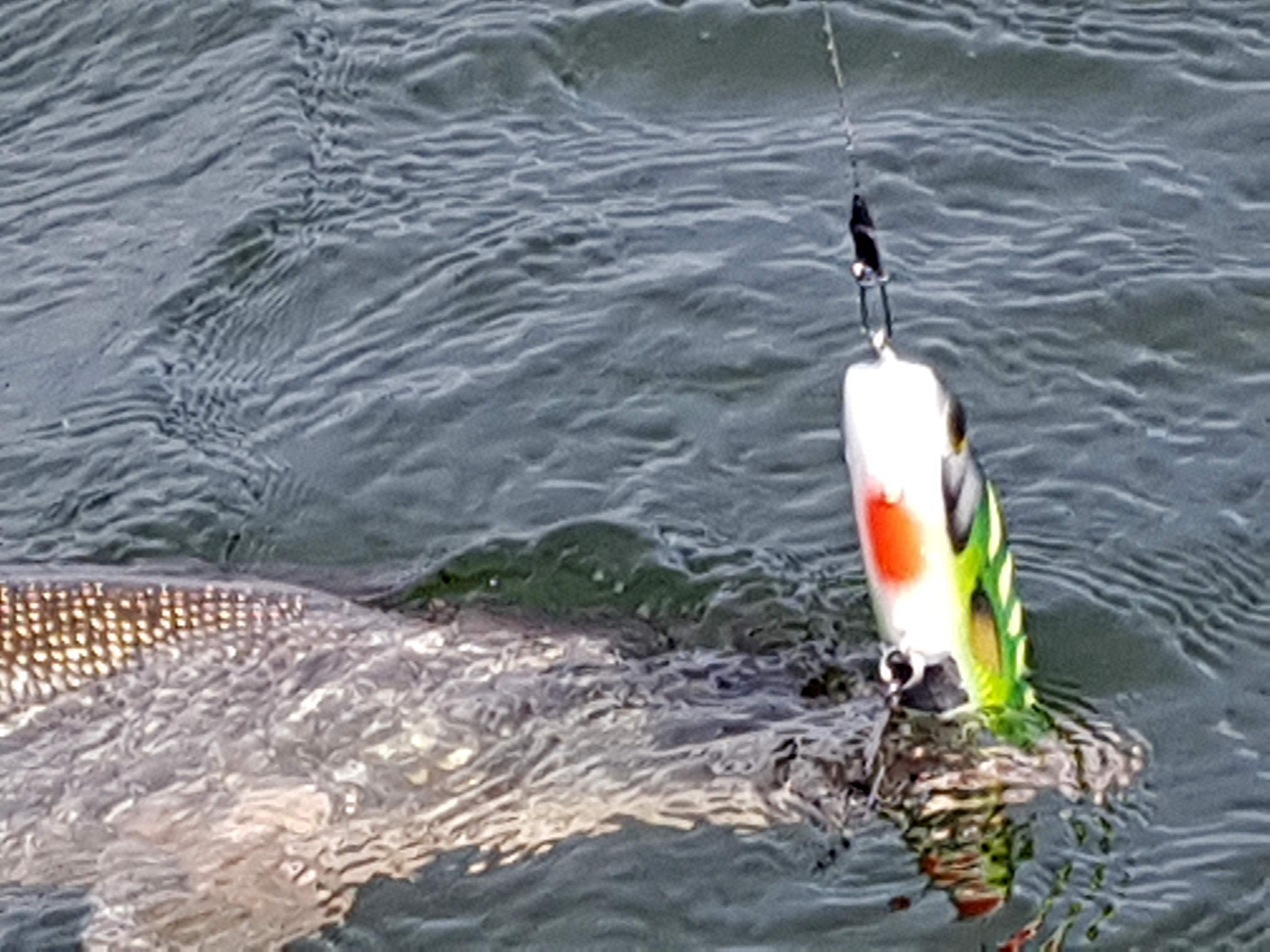 Половил и на дайверы... не думал что получу такое удовольствие ! В условиях прозрачности иной раз было видно как его атакует щука, очень полезно было и не забываемо драйвово. Тем самым вывел проводку на которой рыба била приманку наверняка, а не просто сопровождала не зная как ее ухватить. Ловля была в среднем 5-6м. По соревновались Salamander 180 Paddle Tail и Salamander 180 Fins Tail. Подгружал их 10гр но один перед петлей первого крючка, другой за ней. Это давало разное заглубление, первый загонял до двух метров, второй шел метр может чуть больше. Что интересно дайвер с Paddle хвостом хоть и шел выше, но щуку привлекал чуть лучше.