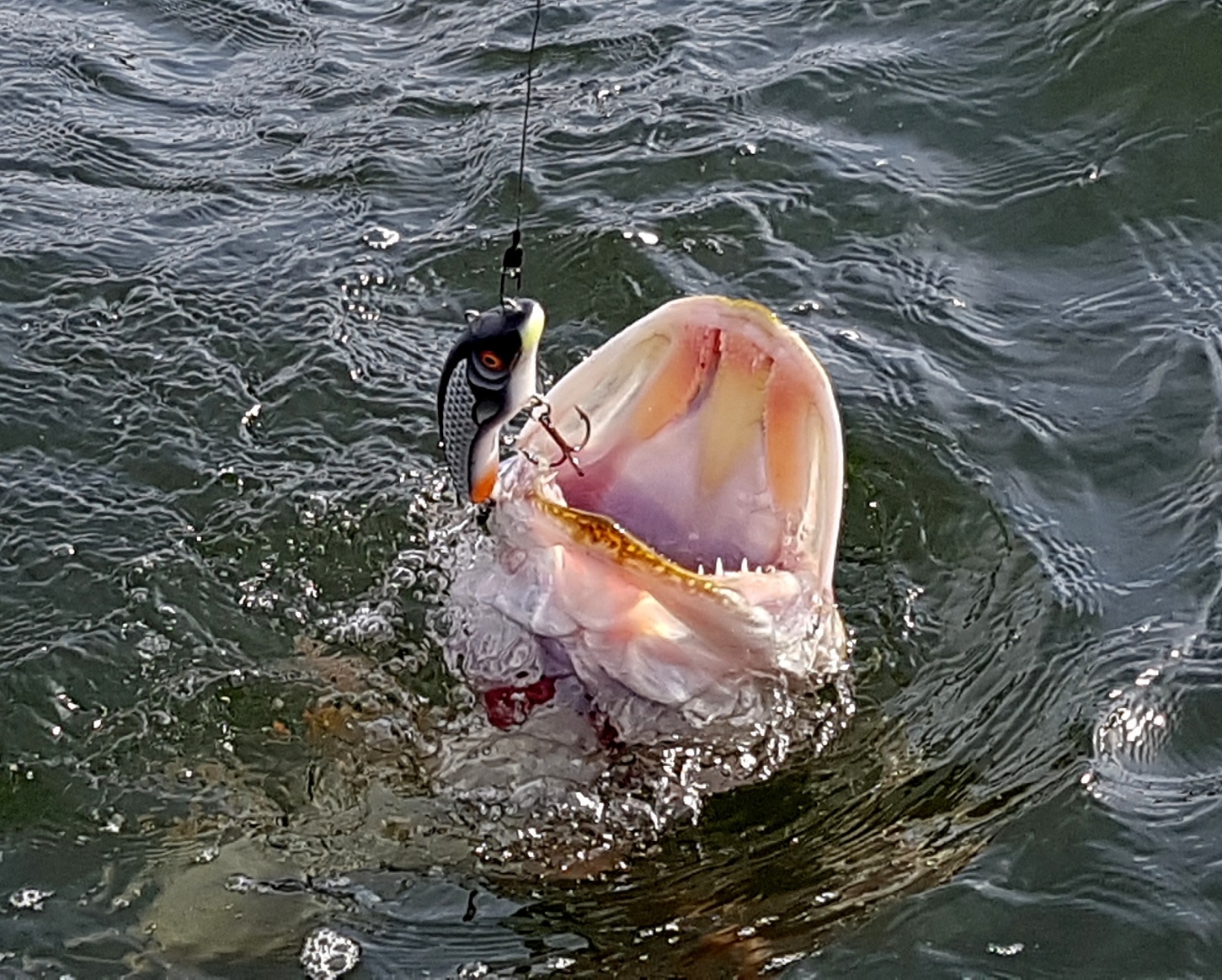 Ух какая красота. Смотрю ты даже за верхнюю петлю гонял Sea Dog. Хорошо когда глубина это позволяет. Агрессивность игры пропадает но заныривать начинает гораздо глубже. И на хвост твистерок добавил. Я что то с резиной так и не попробовал. Надо будет обязательно провести этот эксперимент. Он правда и без резины ловит. Но думаю твистерок точно добавляет поклёвок.