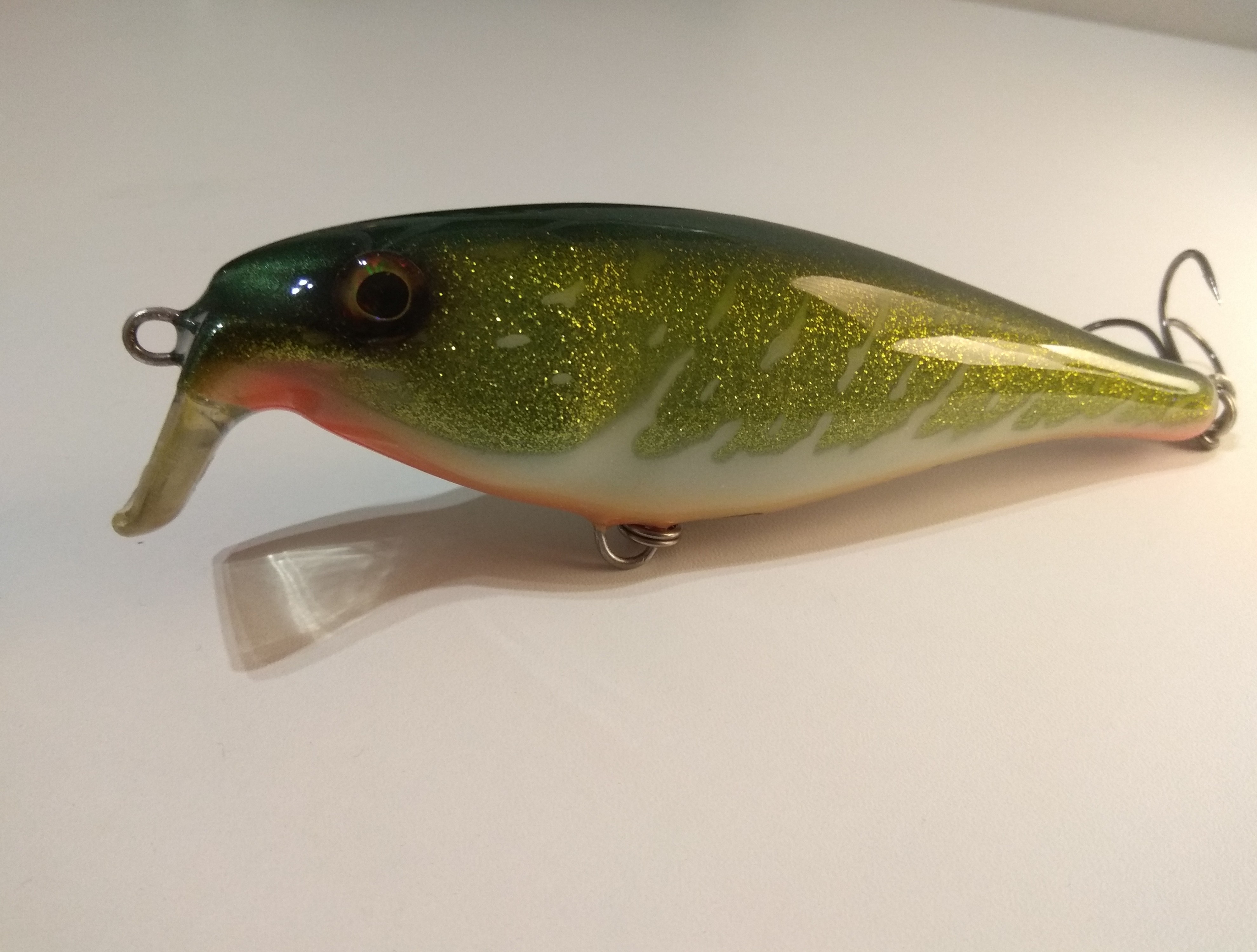 Вот результат проделанной работы ( под щуку) и как образец с минимально изменённой окраской только с целью скрыть следы огрузки ( под плотву) из ранее переделанного воблера