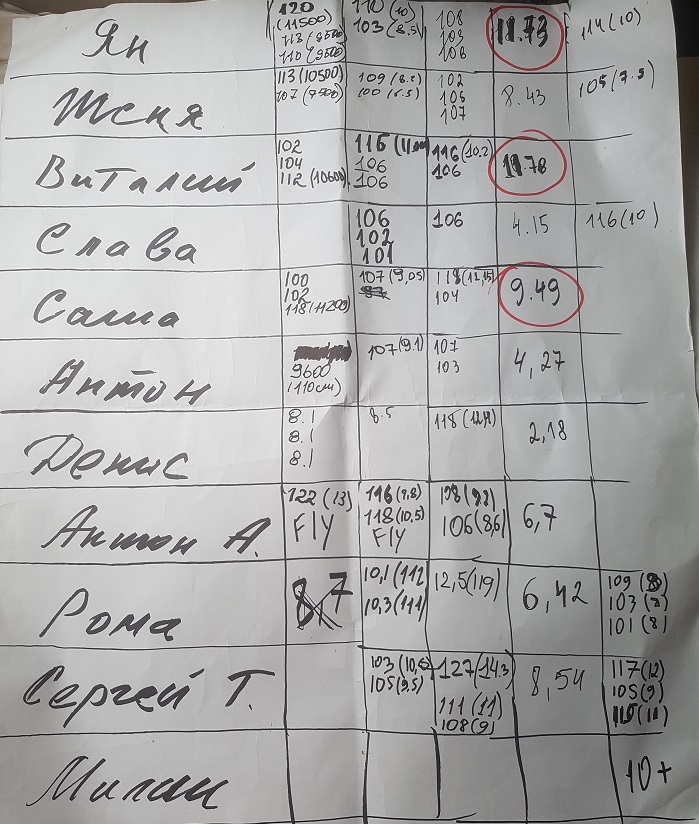 С разницей всего 0.5см впереди Виталий Филиппов (11.78 м) - Jerkmania Team (Моск.обл, Россия), второй Ян Боже (11.73 м) - Jerkmania Team (Екатеринбург, Россия) и третий Александр Веник ( 9,49 м)- Jerkmania Team (Санкт Петербург, Россия)