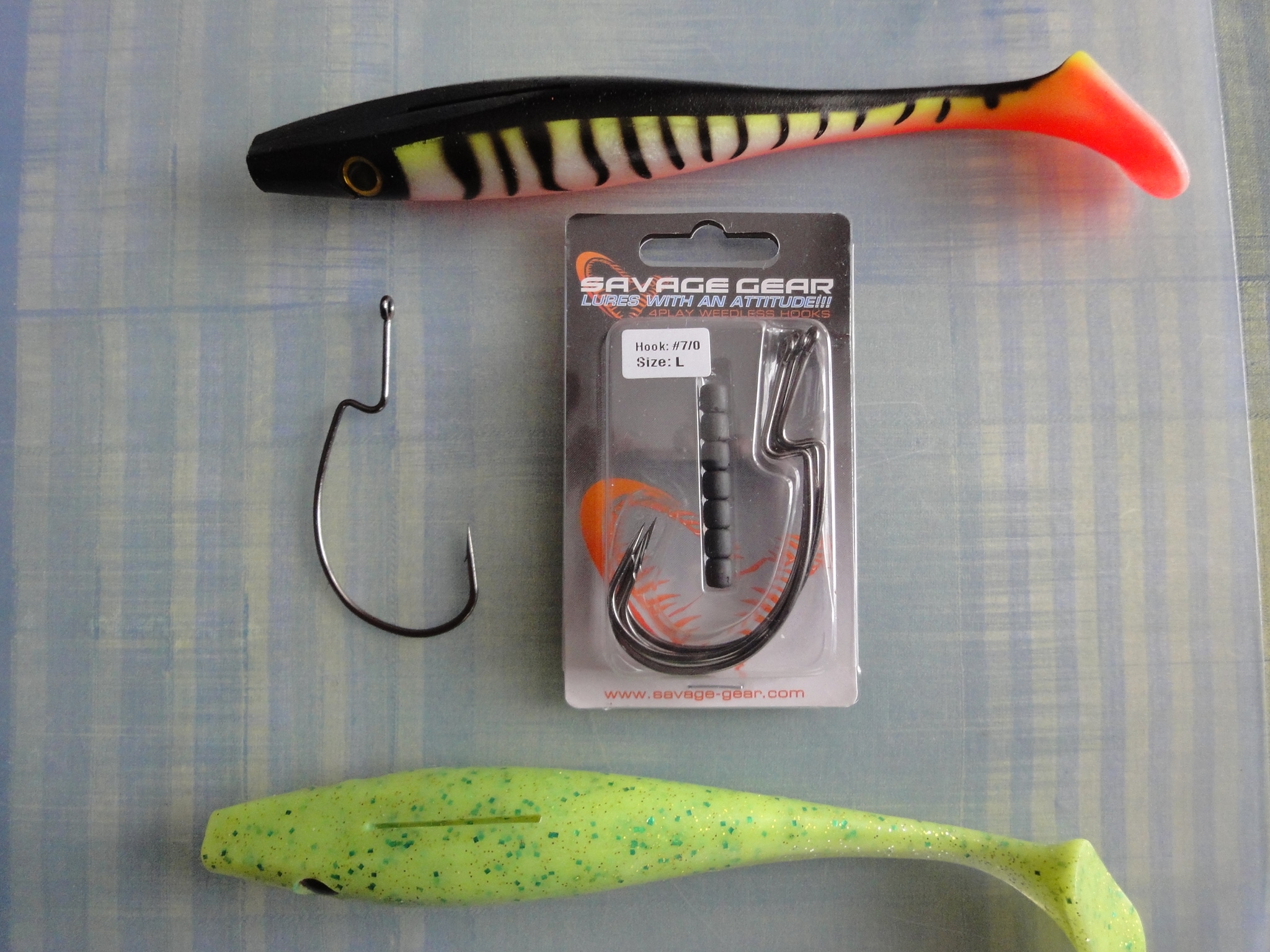 Саша, я честно говоря не для пигов их использую а для мягких SG, а вот для пигов скорее другие подайдут, тут наверное ты прав. Я даже не собирался в пиги их совать, у меня нет задачи делать из них незацепляйку.alevkovsky писал(а):Я тоже одел джуниора на крючок от савадж saoft4play как на фото - мне не очень понравилось, там маловато свободного хода у крючка остаётся, особенно если грузик одеть ещё - думаю будет плохо засекаться. И сидит не очень ровно если крючок спрятан. На днях сделаю фото.