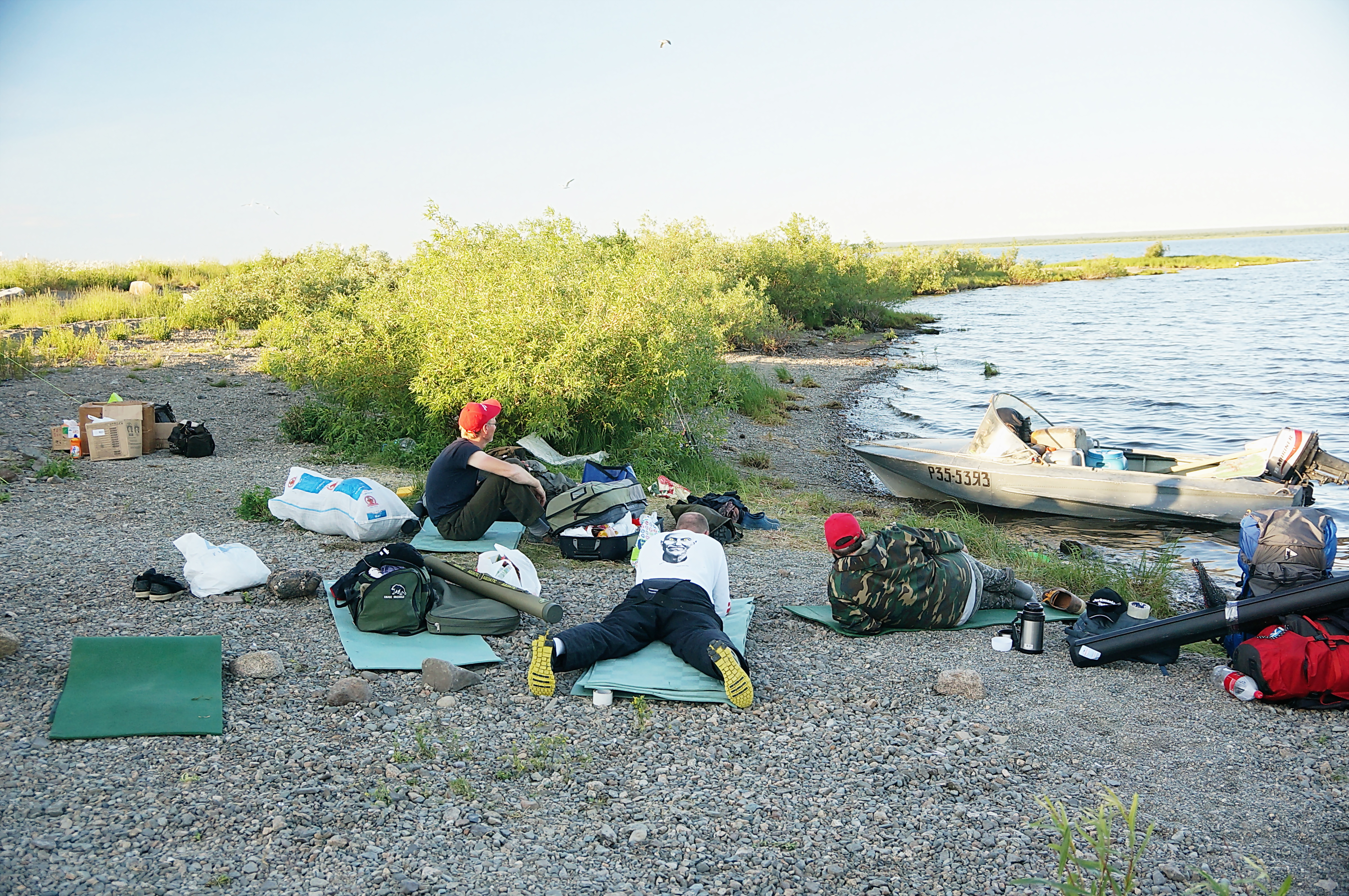 Жара. В палатках душегубка и заснуть практически не возможно. Второй день мужики купаются . Всем не хочется выходить на ловлю ища спасения в лагере. По мне так лучше со спиннингом , там хоть чуть обдувает ..
