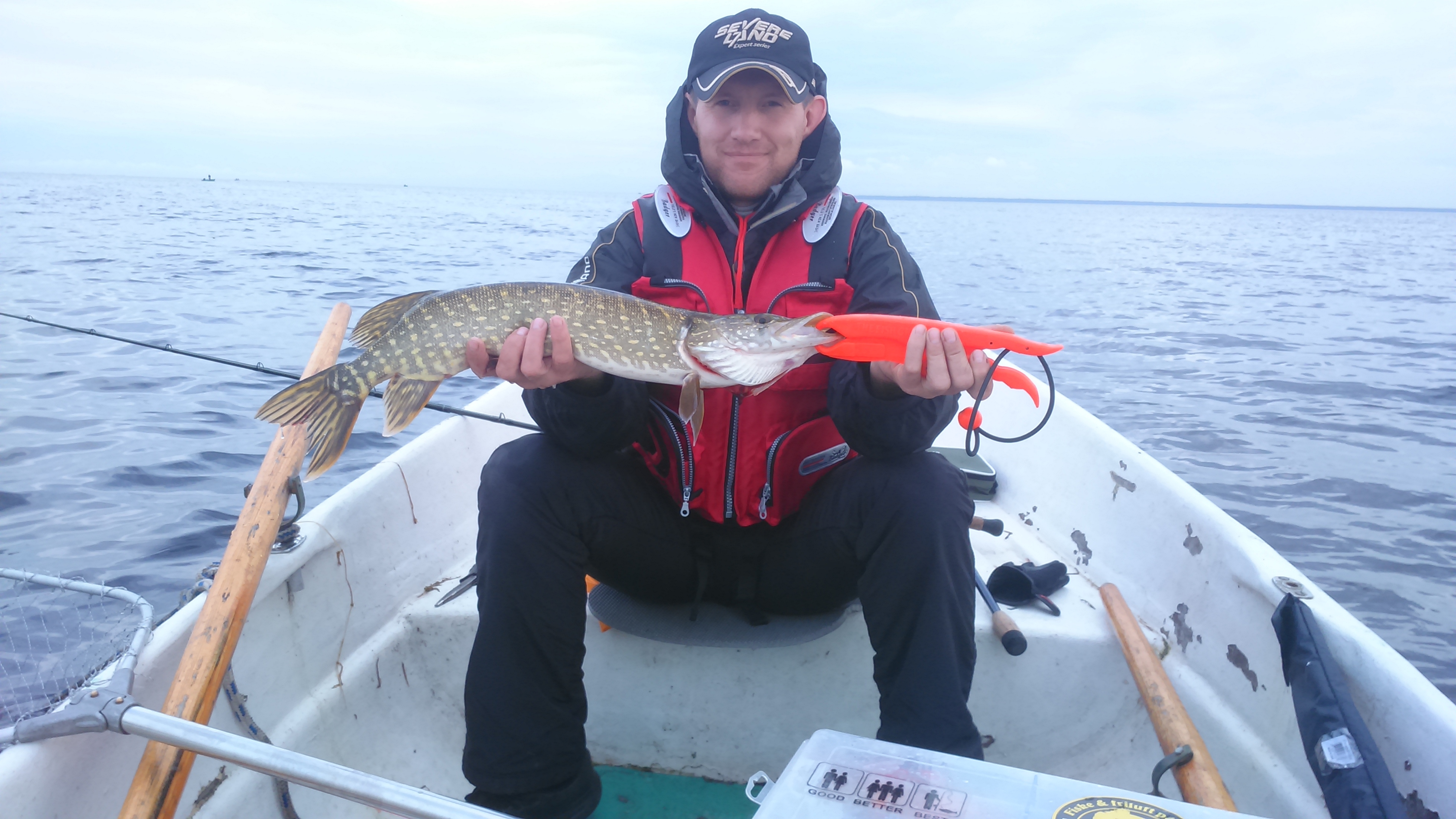 Спасибо Александру, отрывает меня от домашних , семейных будней и вытаскивает на домашние водоёмы нашего города. Всегда рад составить ему компанию. Вышли на воду начали облавливать водоём, подбирать ключик. Пераые полетели Бастеры, Вольфы и большой ассортимент приманок, но результатов не было. Первая щука у меня среагировал на свим Spro Bbz. Вторую и третью поймал на Jay Long Tail. Сашка ,, Везунчик''))) поймал всё таки свою хорошую рыбу, тогда когда щука не реагировала почти на джерки. Я теперь тоже начинаю пересматривать своё отношение к резине, хотя раньше не очень в неё верил и не очень её любил.