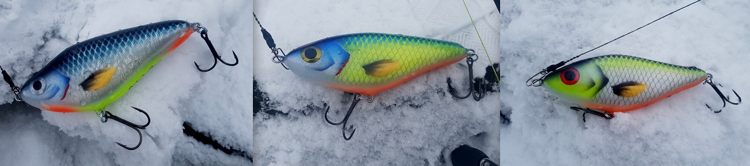 Три шада.... все по 14см медленно тонущие. Первые впечатления! Верхний и нижний казалось бы схожи, но в игре белый разворачивался чуть ли не в обратную сторону, потрясающая поворачиваемость. Нижний так же делает хороший разворот с подвиливанием хвоста. Джерки среднеходы. Названий пока нет. В густерку, так пока назвал, просто влюбился, в ней есть все и поворот, и проход, и качение... Еще надо погонять но предвижу что приманка удалась, в прочем как и первые две.