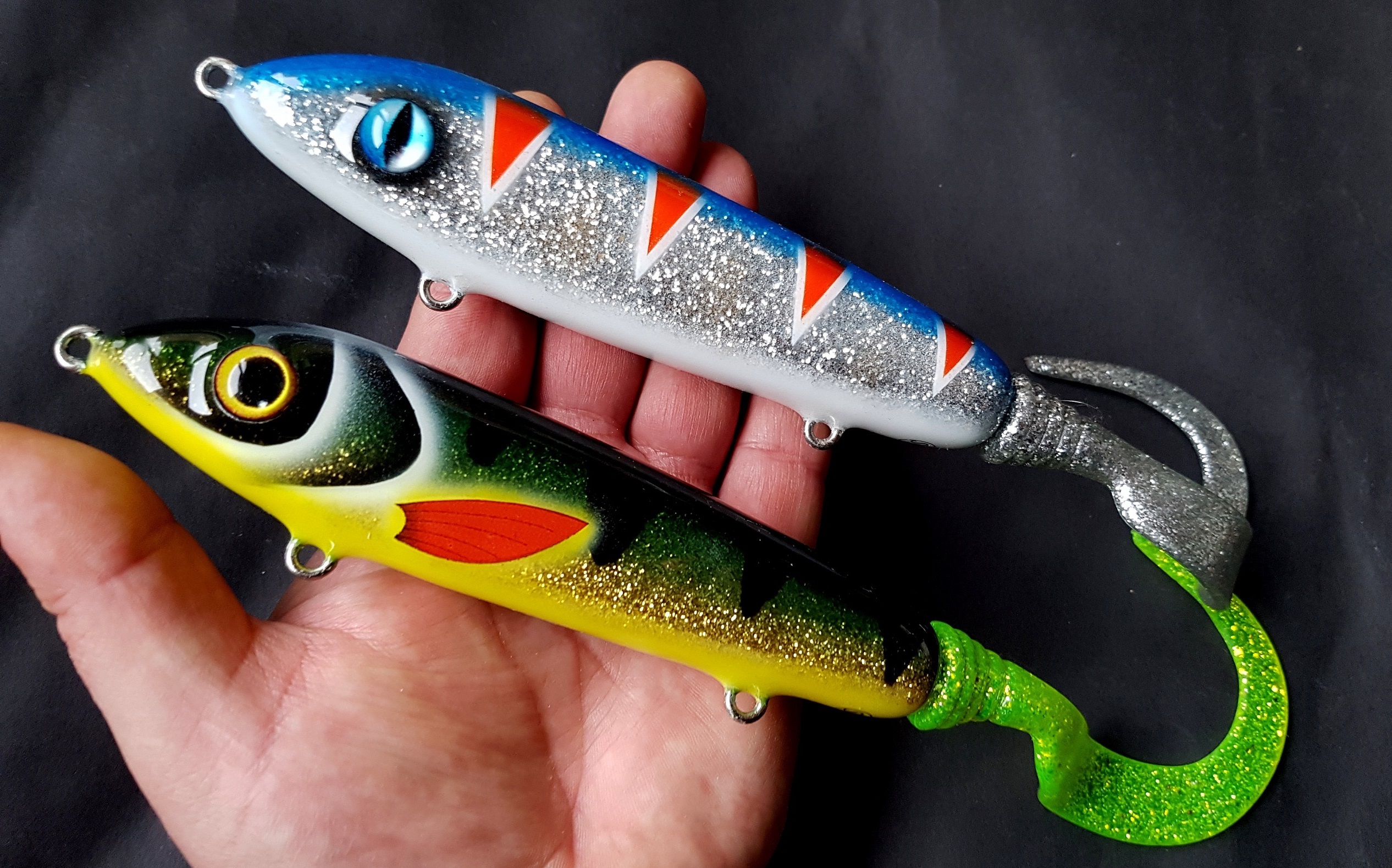 Очень хотелось не крупного горбатого толстячка могущего таскать крупный хвост типа Svartzonker Tail Xtra Svans. Озадачил Сашу, И вот на фоне Magnet Tail новая моделька Fox's tail в цвете Electric Blue 10см по корпусу и 77 по весу...Очень понравился на тестах, достаточно резвый и стабильный. Уверен в следующем сезоне однозначно выстрелит, уж и размер вкусен, и игра хороша!