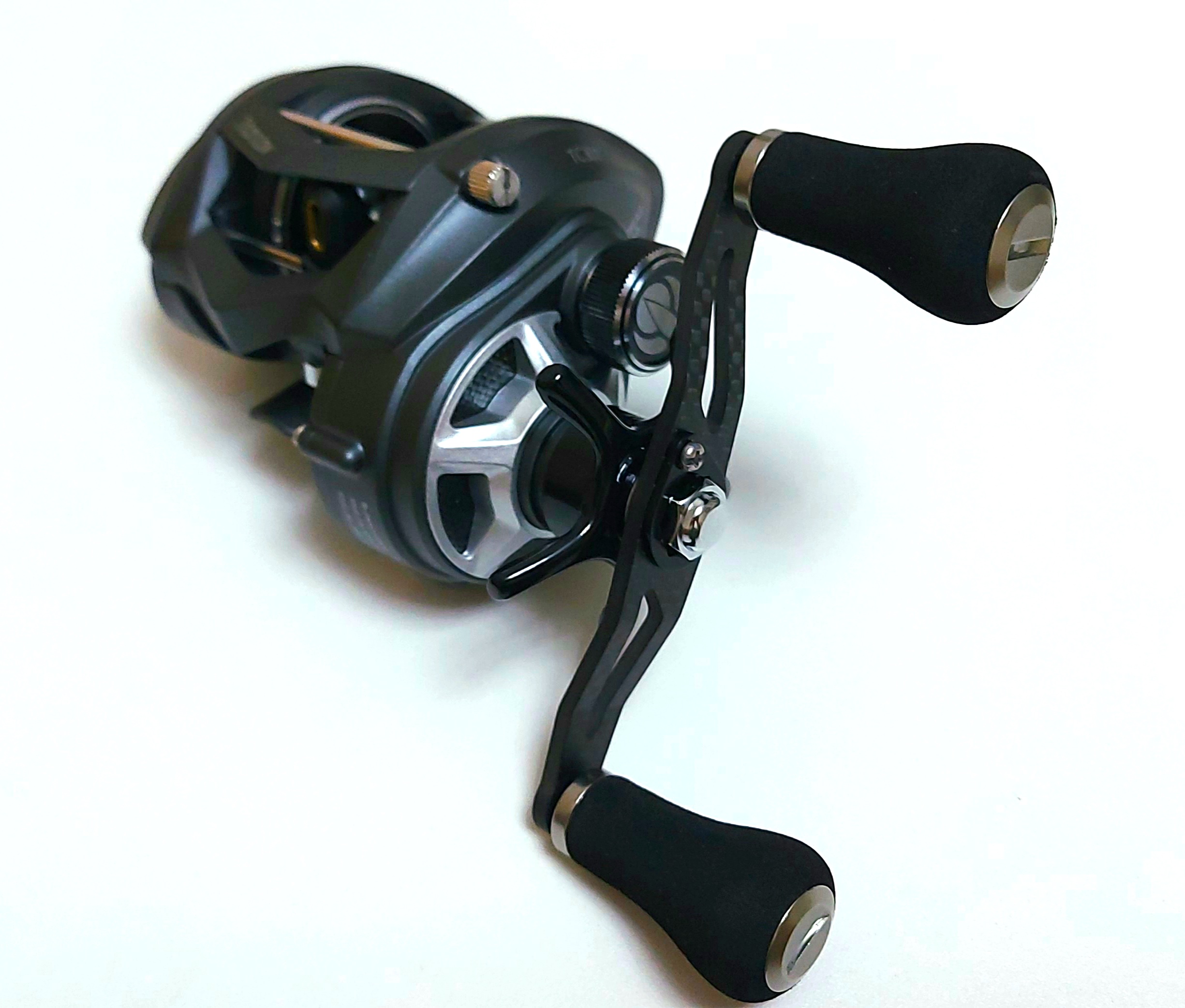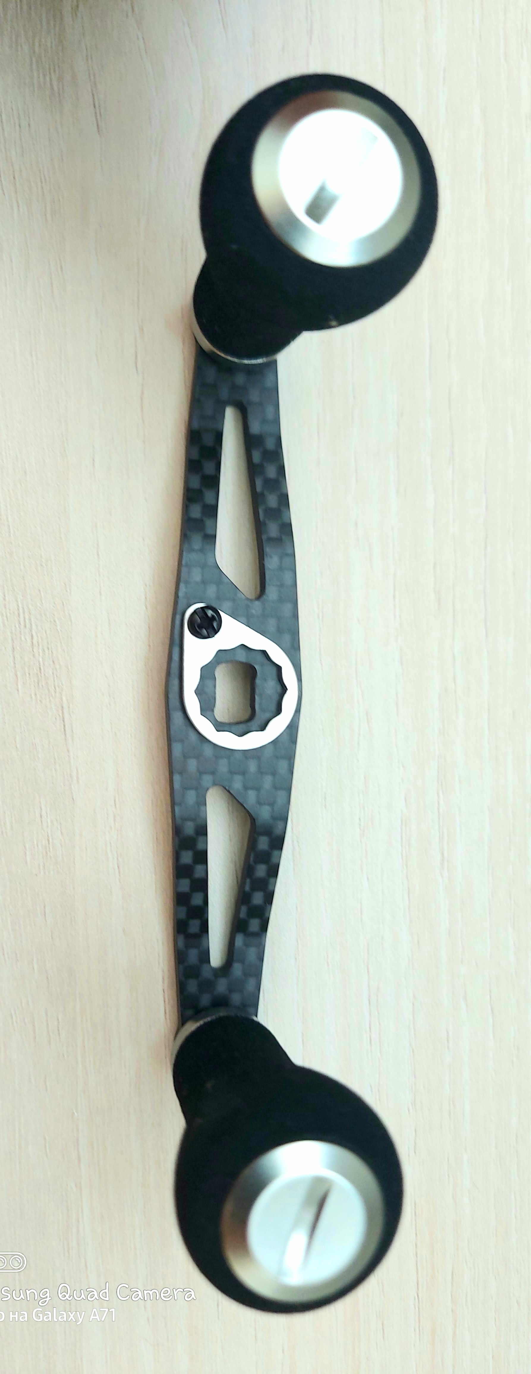 Бонусом кастомная карбоновая 2х кнобовая рукоять( кнобы на шарикоподшипниках).Отлично считается с карбоновыми вставками на корпусе.
