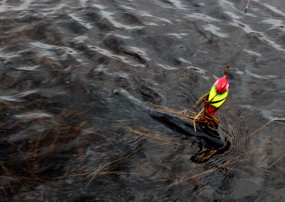 Ни чего выдающегося мы в этот день не поймали.Трофеев не было.Но наловился я от души.Поклёвок было много.Рыба просто,как сума сошла и атаковала джерк по несколько раз за проводку.А так как он проходит под самой поверхностью,то всё это происходило буквально на глазах.В ходе рыбалки пробовал менять приманки,были выходы,поклёвки,но без результатов.Как только ставил обратно Мухамора,всё начиналось по новой .Чем уж он так заводил рыбу,остаётся загадкой.
