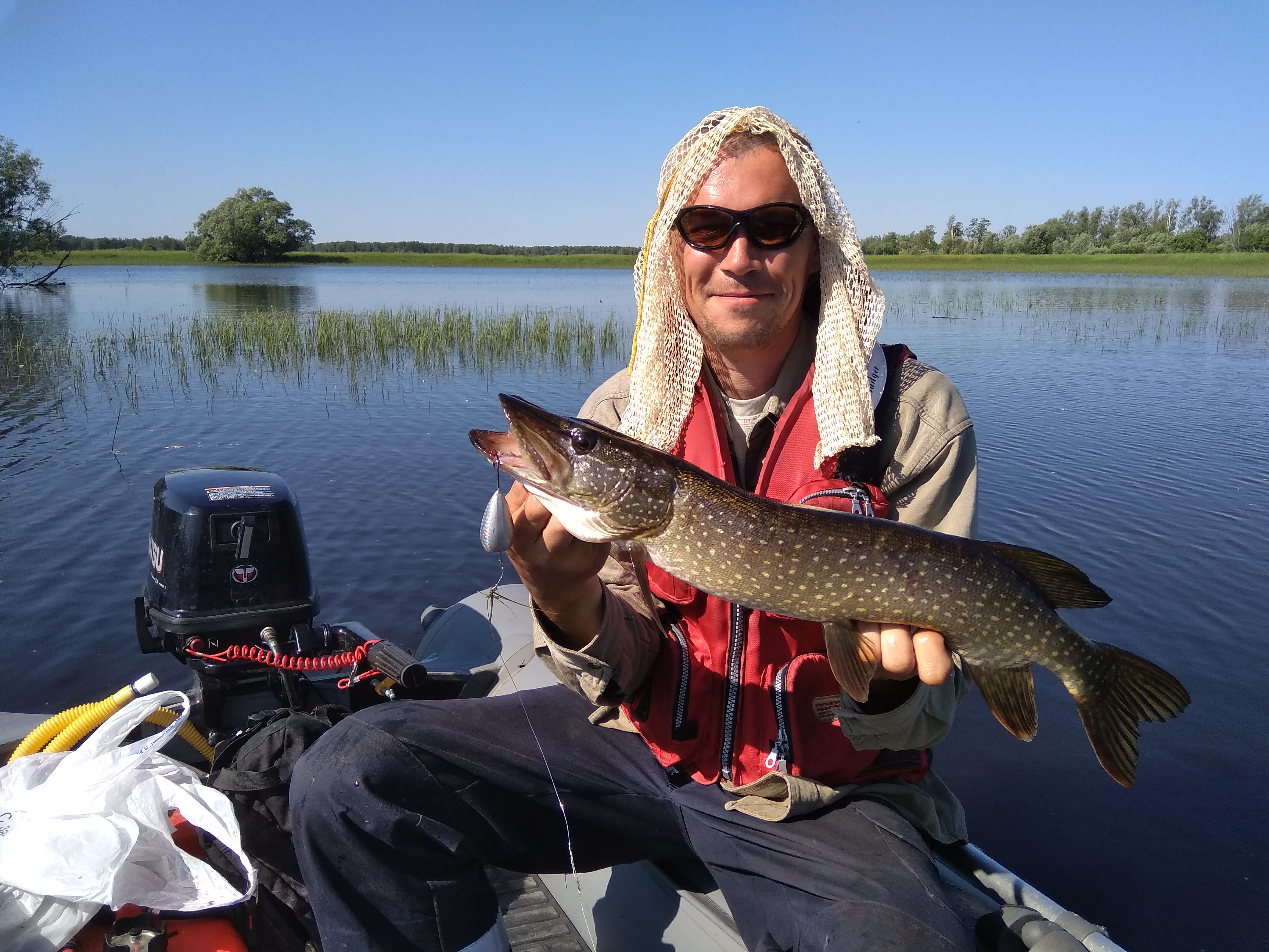 Да не скажу что на вываживание это как то сказывалось, больше задача стояла приманку провести что б траву не цепляла, ибо воды порой десять см над травой и она там сидит, причем любых размеров. Под лодкой тож дай бог см 40 до дна якорь видно. Еще хуже когда щука в кочках и не подойти к ней, видит и уходит. Зачастую в таких усовиях метать приманки приходилось в берег или на край кустов и потом стаскивать что б при падение не влетали в траву...уже наработанный прием :D
