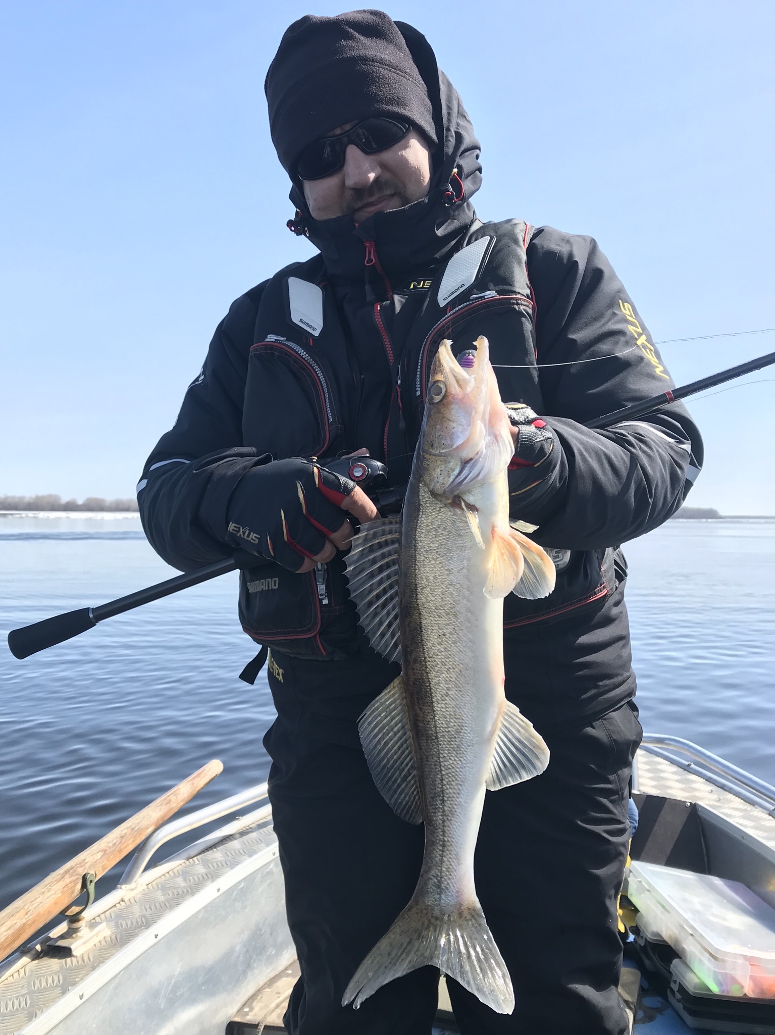 Намечал на 7.04 - Волга не вскрылась. Заболел сам, заболел напарник. Напарник решил по итогу не ехать, а я накушался таблеток и - в бой. Ибо с 21.04 - запрет. И мой переезд на Урал до его завершения. Ну, и Волга Мама порадовала на прощанье... Точнее, сначала я местами ехал, местами плыл на своей СХ-5. Ломая лед на лужах, ибо -5 на градуснике. Потом, собирая спин, опрокинул здоровую коробку со свинцом и минут 15 собирал все хозяйство в снегу. Потом корячились с егерем Димой вручную пропихивая его Вельбот по снегу и льду к открытой воде. Потом были маневры меж льдов, постоянные зацепы за лед и неудачные проводки между льдин. Пару раз движение белого массива просто оттесняло нас с уловистых точек... Но в результате - шикарная рыбалка получилась. Помимо судачков-килошек, клевавших довольно интенсивно, влетели несколько крепышей. Почему то Диме - исключительно судаки, а мне, наоборот, наши любимые пятнисто-зубастые. Приманка дня - мандула на 52 граммовой чебурахе. АсПро до 50 гр. вынесла все испытания с честью, даже когда вываживала щучку на 5 с копейками кил, которая завела за льдину, и вываживание было просто супер-силовое...