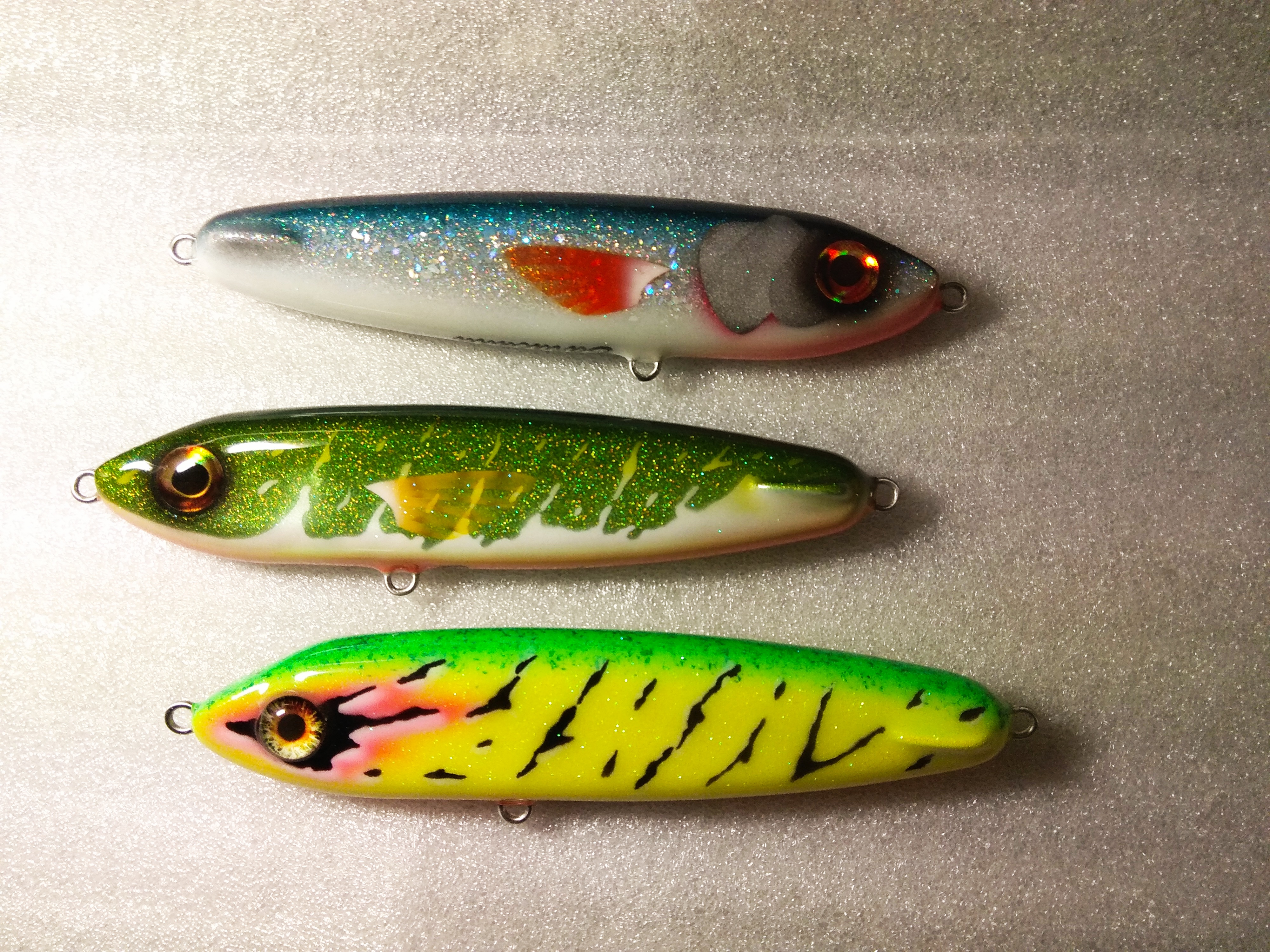Вот результат проделанной работы ( под щуку) и как образец с минимально изменённой окраской только с целью скрыть следы огрузки ( под плотву) из ранее переделанного воблера