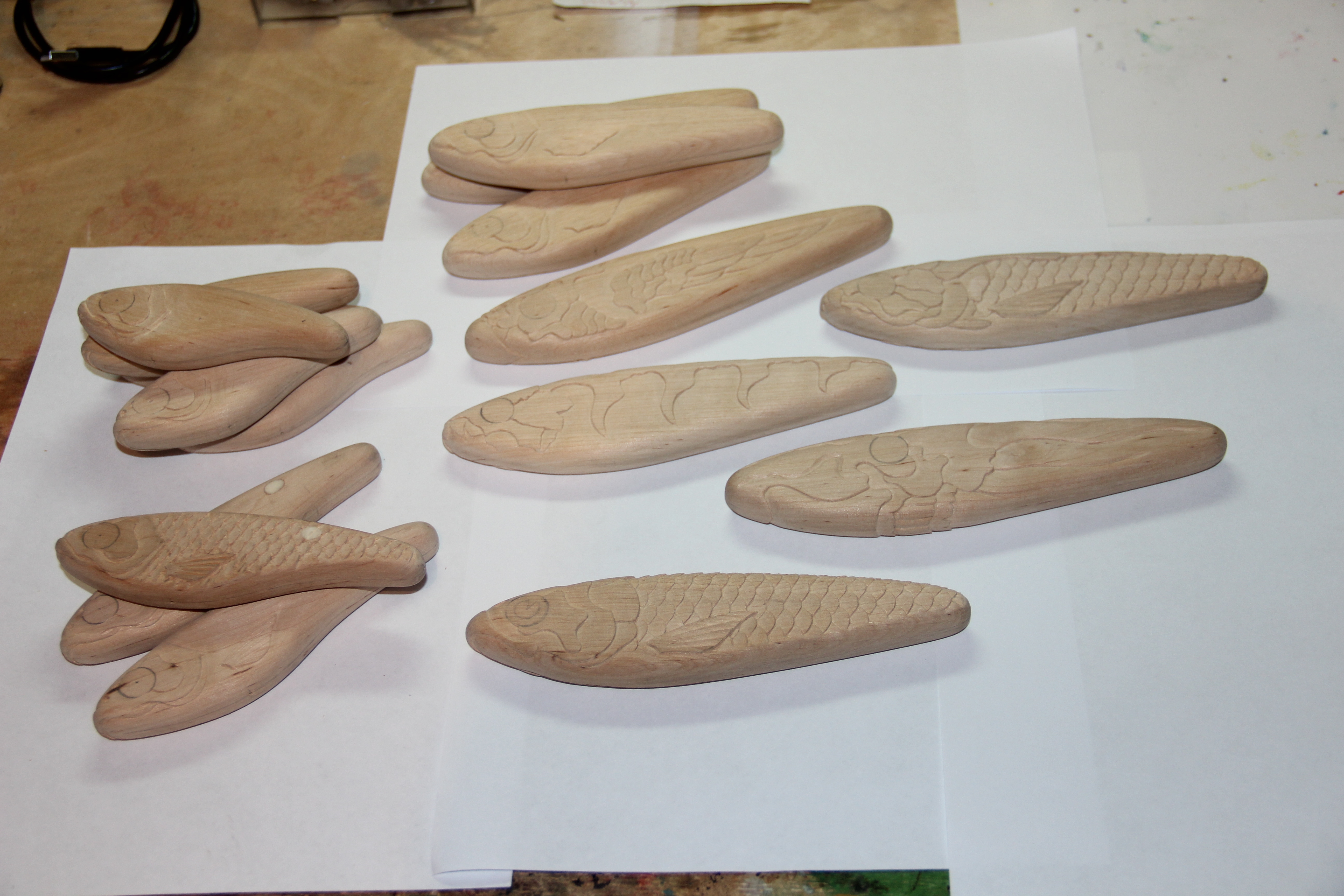 Симпатичные карасики! Работа - резьба ,плюс покраска -супер!