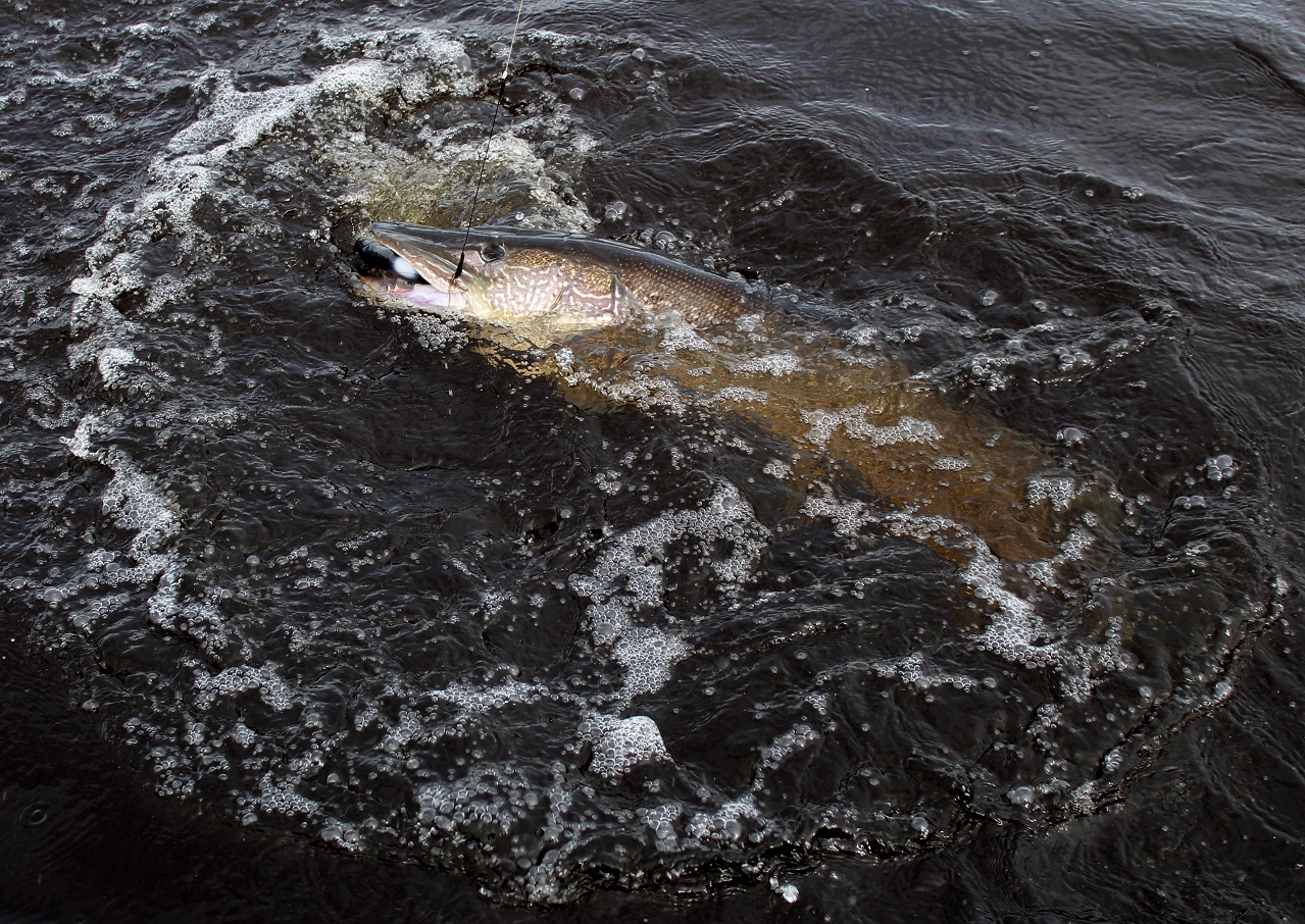 В куче фотографий обнаружил красивую фото-хронологию, от атаки щуки практически у лодки на Classic 17f, до ее возвращения в родную стихию...и так, щука выскакивает слева от лодки, пролетает около семи метров и наперерез с наскока атакует джерк!