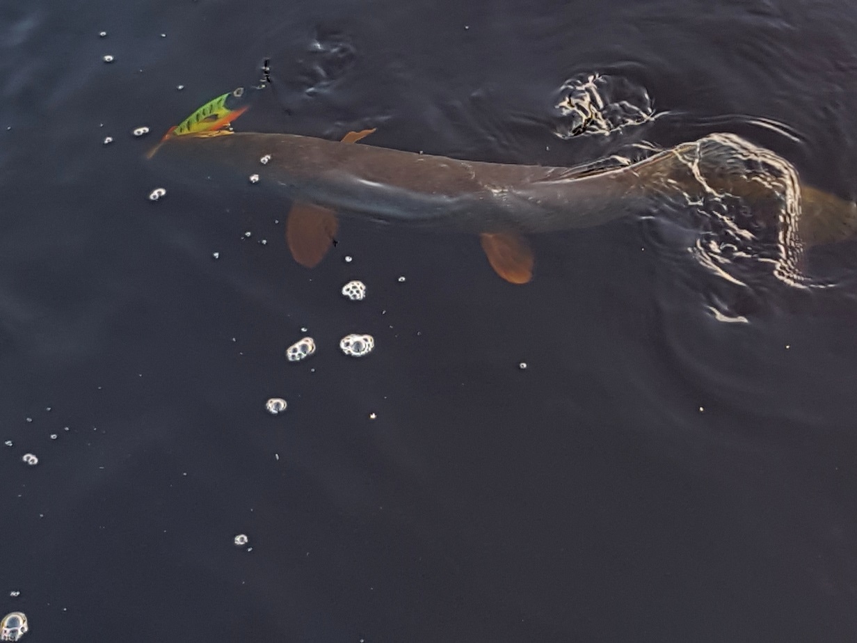 BUBUKA GUPPY SPF -погружал 3гр таблеткой. Это джерк открылся для меня только сейчас. Раньше меня умеляла длина и плавность проходов от не сильного тычка катушки, и это очень нравилось, но совсем не вкурил вертикальную составляющую игры при тычках, казалось это не так должно нравится щуке. Но вот Игорь двумя постами выше заставил обратить внимание. Обратил))) GUPPY в этой поездке был джерком который ловил именно на этой хаусной проводке все размеры рыб и был на мой взгляд без отказен щукой во всех случаях. Максимальная рыба 11 кил...