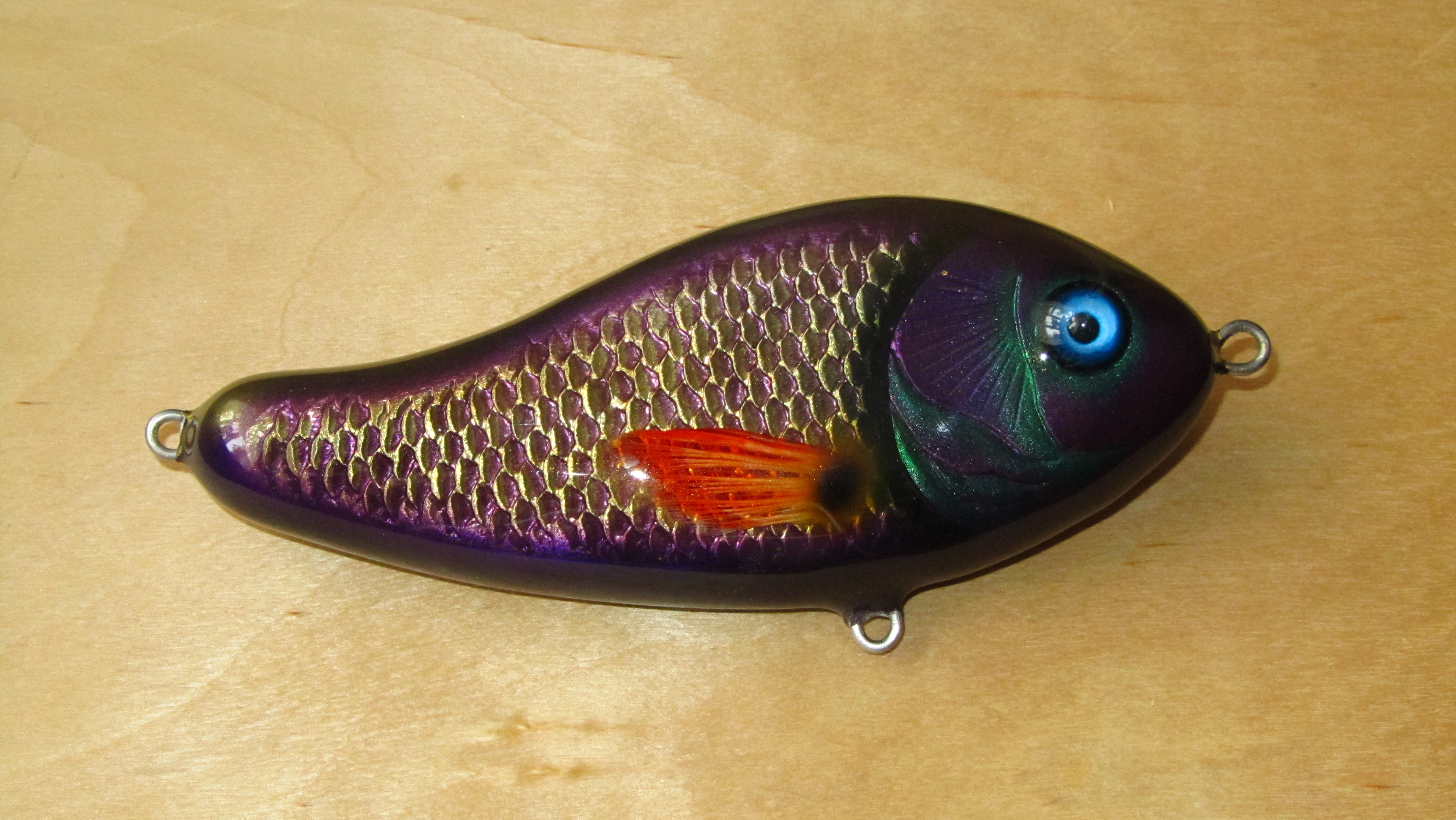 Тейлбейт. Тонет со скоростью 20 см/сек. Длина тела приманки 140 мм, длина вместе с расправленным хвостом 250 мм. Вес 135 гр.