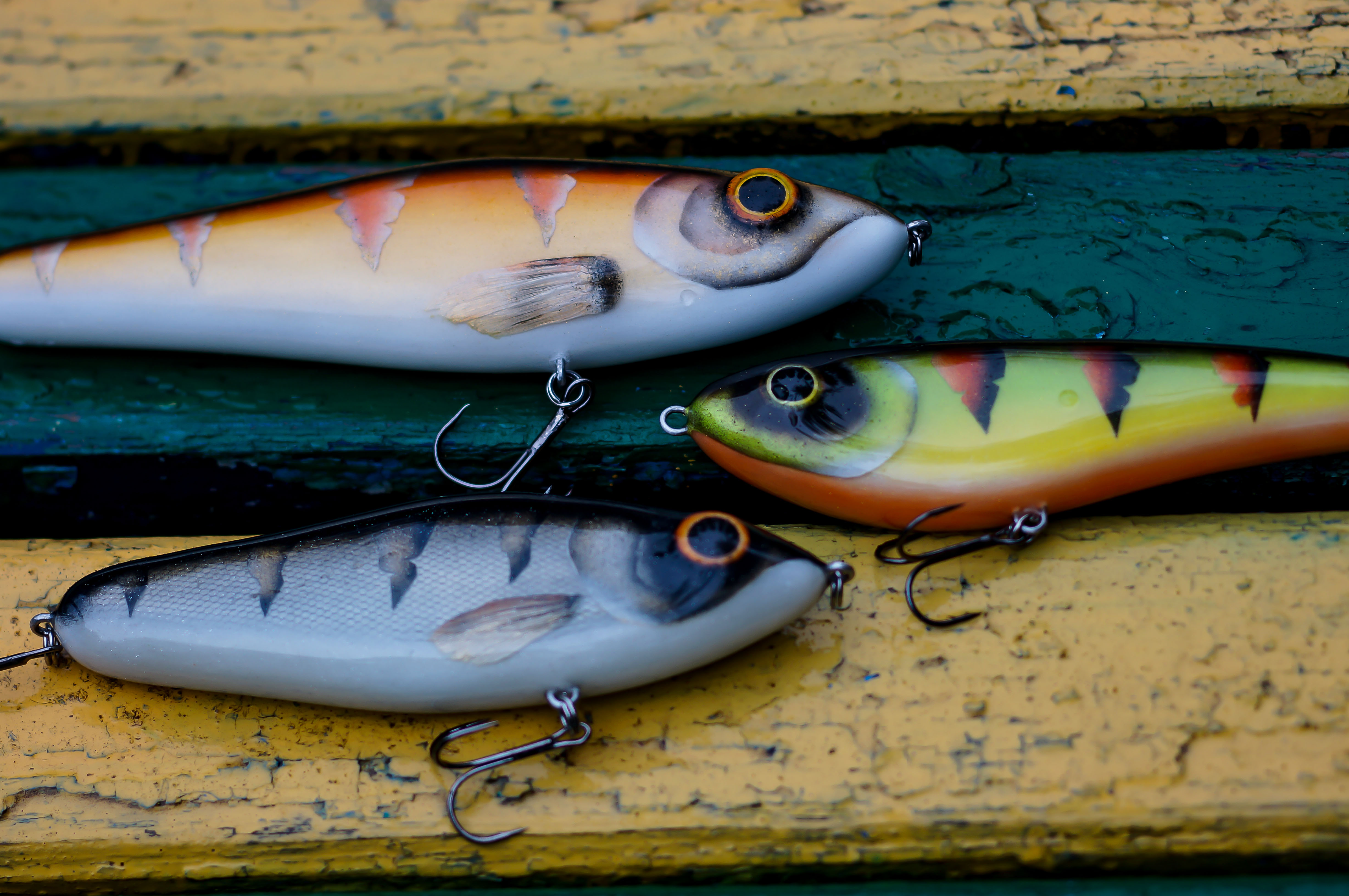 Нижний- канадский кедр 190гр 19см Крайней поездкой очень порадовал, поймал на него больше чем на другие джерки и стандартные размеры. Сейчас отшкурен и залачен заново