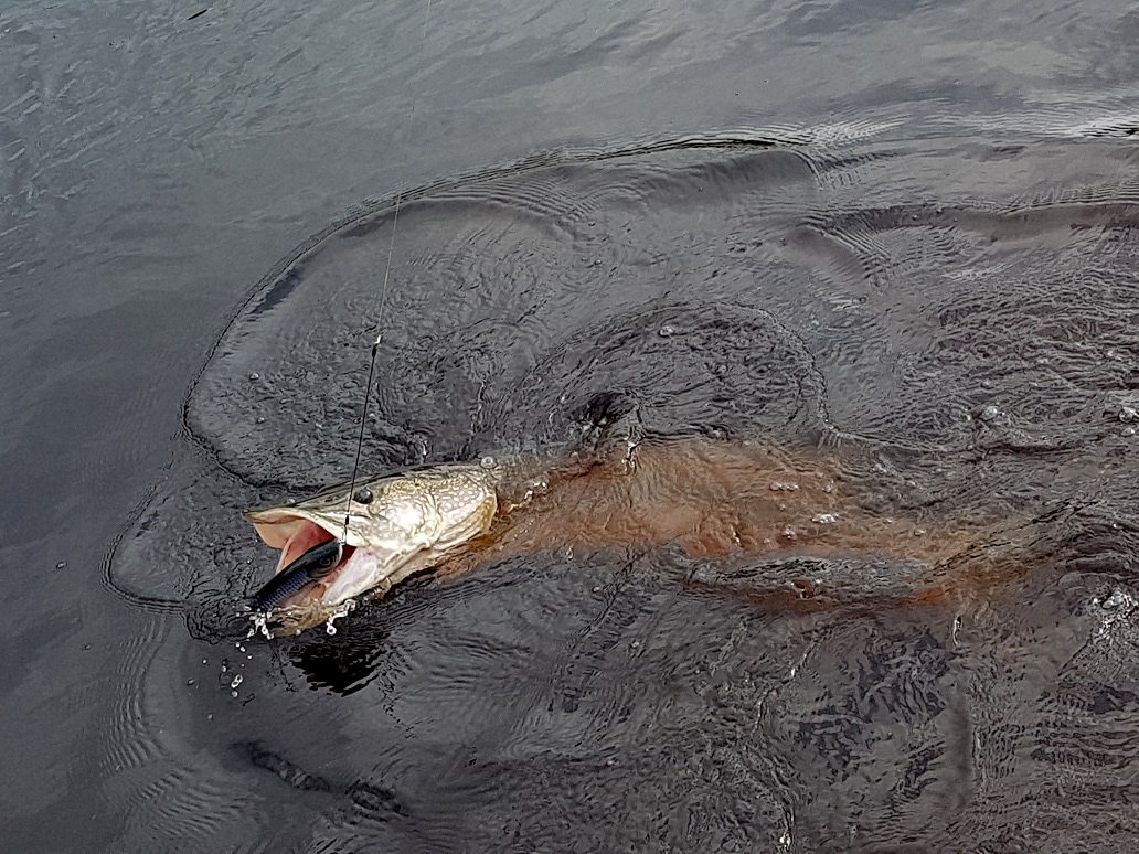 Одной щуке джерк поместился почти весь поперек пасти, а это 18см совсем не мало