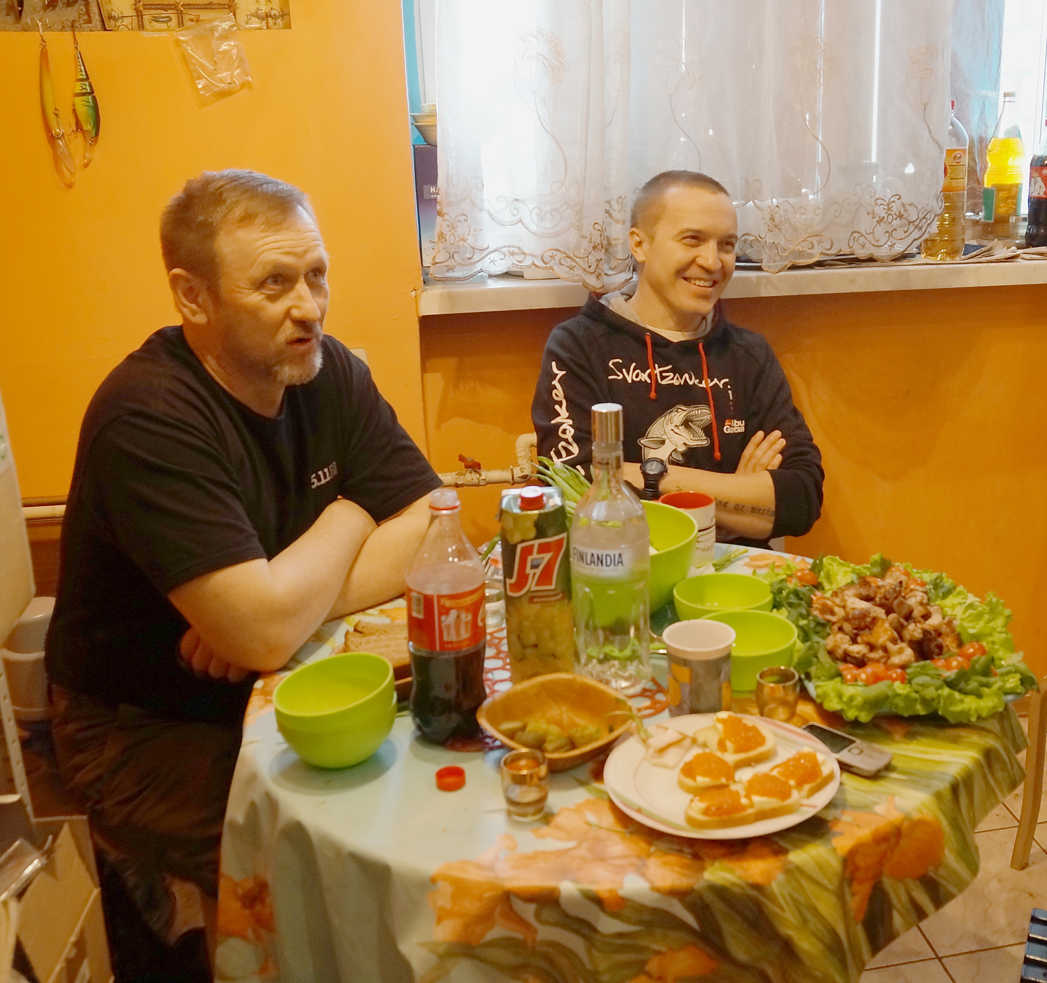 Всем привет! В субботу встретился с Володей (рядом живём) и к Витале ! Сразу началось о джерках , щуках , о его северных рыбалках.. В Долгопрудном нас уже ждал skipper и айда к ребятам . Звонок в дверь-Гена встречает своей дежурной улыбкой , хозяин заканчивает приготовление к столу.