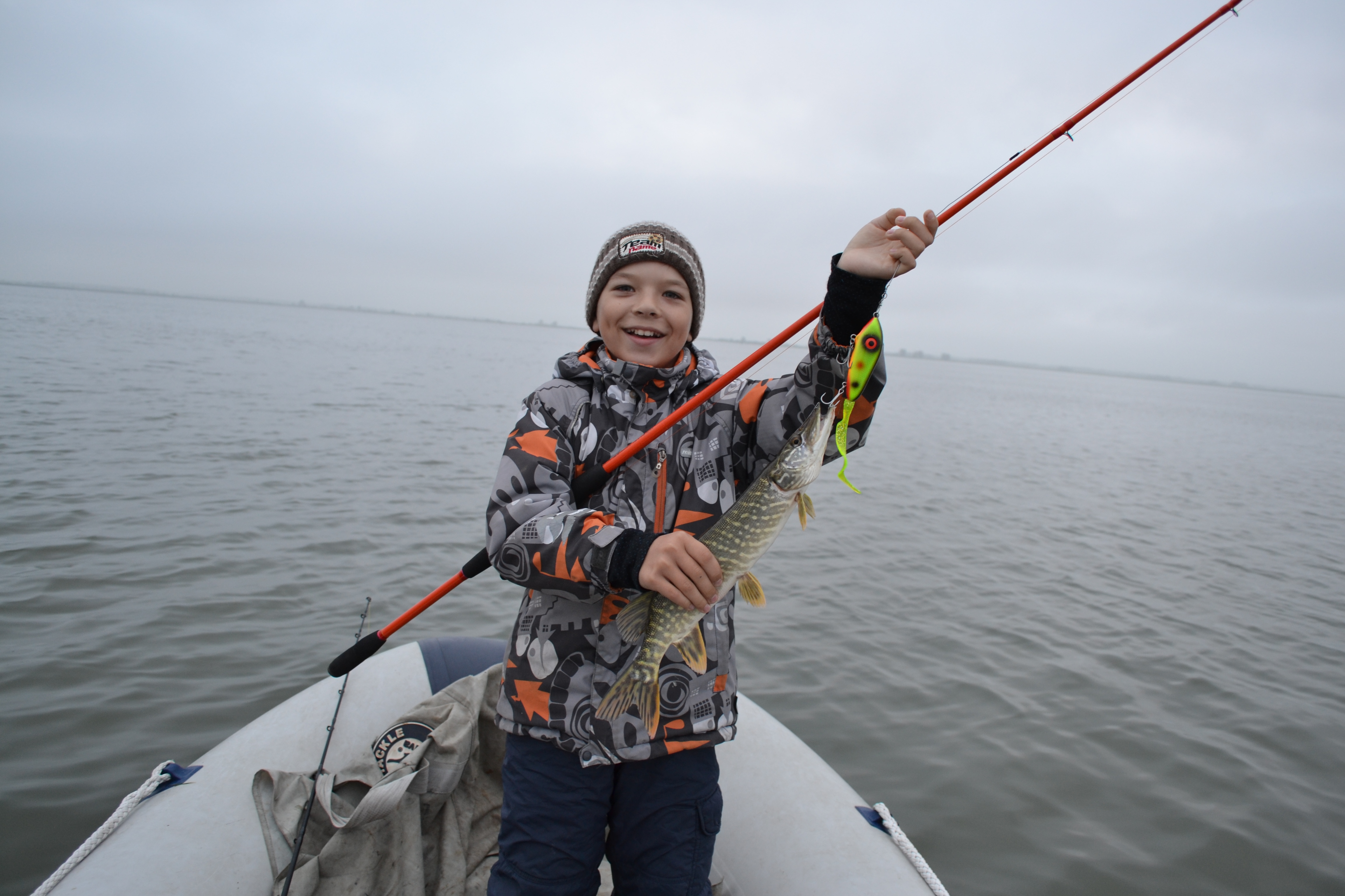Предыстория: после того как я поймал на джерк свою первую щуку я сделал некоторые выводы:"Мне надо другой спиннинг подлиннее и полегче тестом так как этот ,я считаю,короткий и мне не удается закидывать джерк далеко и проводка какая-то не та которую надо" -сказал я папе. На что он мне ответил-"Хорошо, тогда я нахожу тебе другой спиннинг, но ты в свою очередь начинаешь ловить на него рыбу, а не валятся целый день в лодке"."Хорошо, я согласен на твои условия"- сказал я. Спустя какое-то время я начинаю задумываться: "Мне же надо поймать щуку или папа найдет себе нового напарника". :lol: На следующий день мы едем на рыбалку и мои догадки оказались правильными,мне и в правду стало легче и дальше забрасываться ну и джерки стало проводить проще. Еще через одну неделю мы едем на очередную рыбалку и в тот день я ловлю эту самую трофейную щуку: