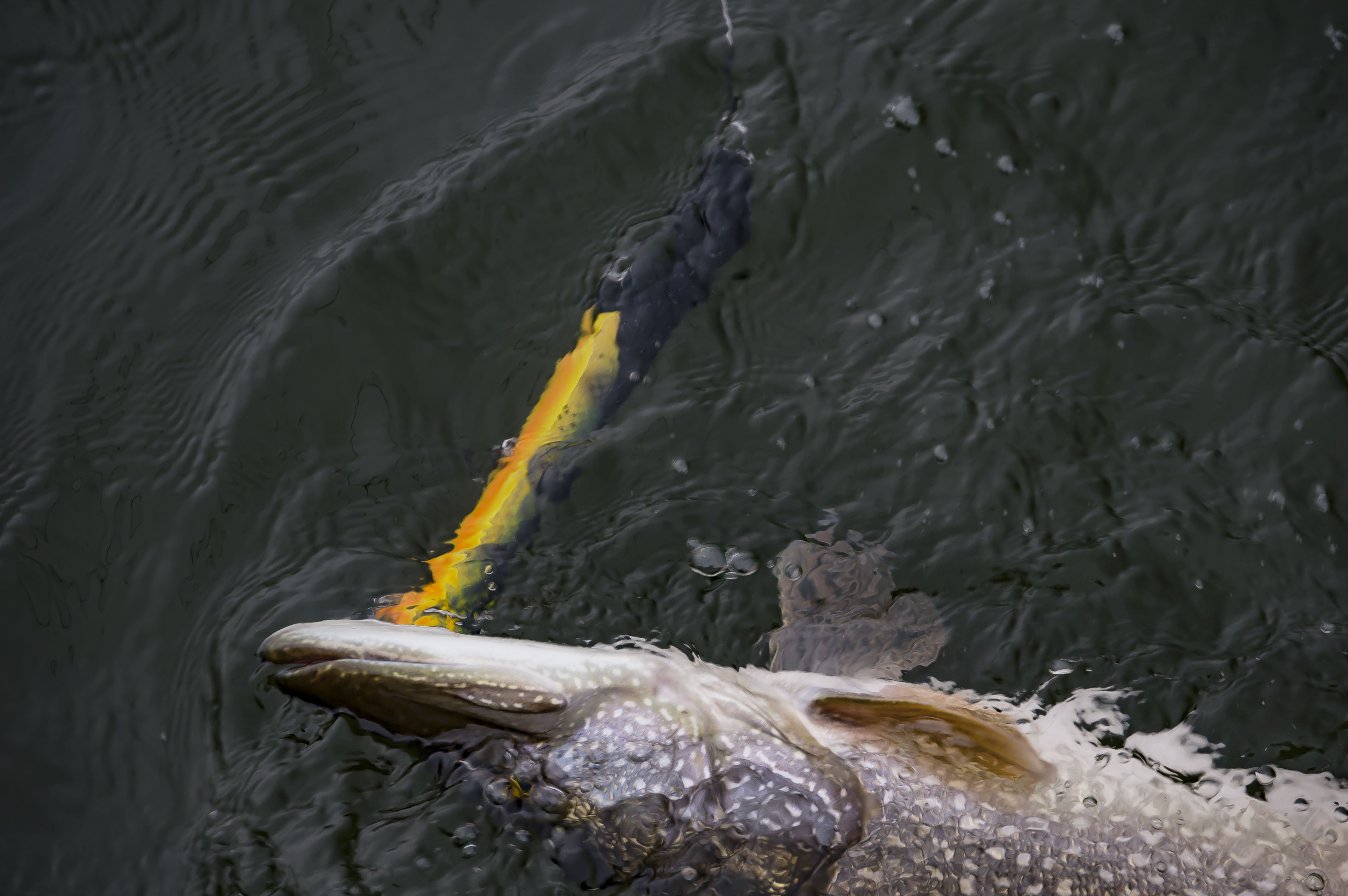 Одним из наиболее эффективных способов проводки этих приманок на мой взгляд будет использование коротких быстрых рывков с небольшой паузой между каждым движением рывка, такая некая имитация раненной рыбки. Хотя подход проводки одинаков, то сам принцип исполнения движения этими приманками выглядит по разному: Zeus HТ сразу достаточно резко мощно амплитудно раскачиваясь из стороны в сторону атакует и выходит на рабочую глубину, на паузе медленно выравнивается и горизонтально всплывает с эффектом вращения вокруг оси, подвешенная блесенка в купе с родным но усеченным хвостом от родного HAWG TEASER оказались весьма под стать характеру приманки, блесну бросало из стороны в сторону и колеблющий посеребренный блеск был видит даже на значительном расстояние так же как и видим был хвост со своими мощными вращениями ... DOK Killer, имеет меньший угол атаки но боле размашистую и резкую игру, на паузе джерк замирает, подымает голову и очень медленно всплывает, очень эффектно и по своему вкусно... Уловив ритм, мне показалось что козырной проводкой может быть у Киллера убегающая или потерявшая ориентацию рыбка. В общем с прогонами и подъемами можно еще по экспериментировать, думаю что можно найти и другие интересные для хищника действа с приманками, а так, имхо приманки удались, и если их применять по назначению то разочарований не будет....