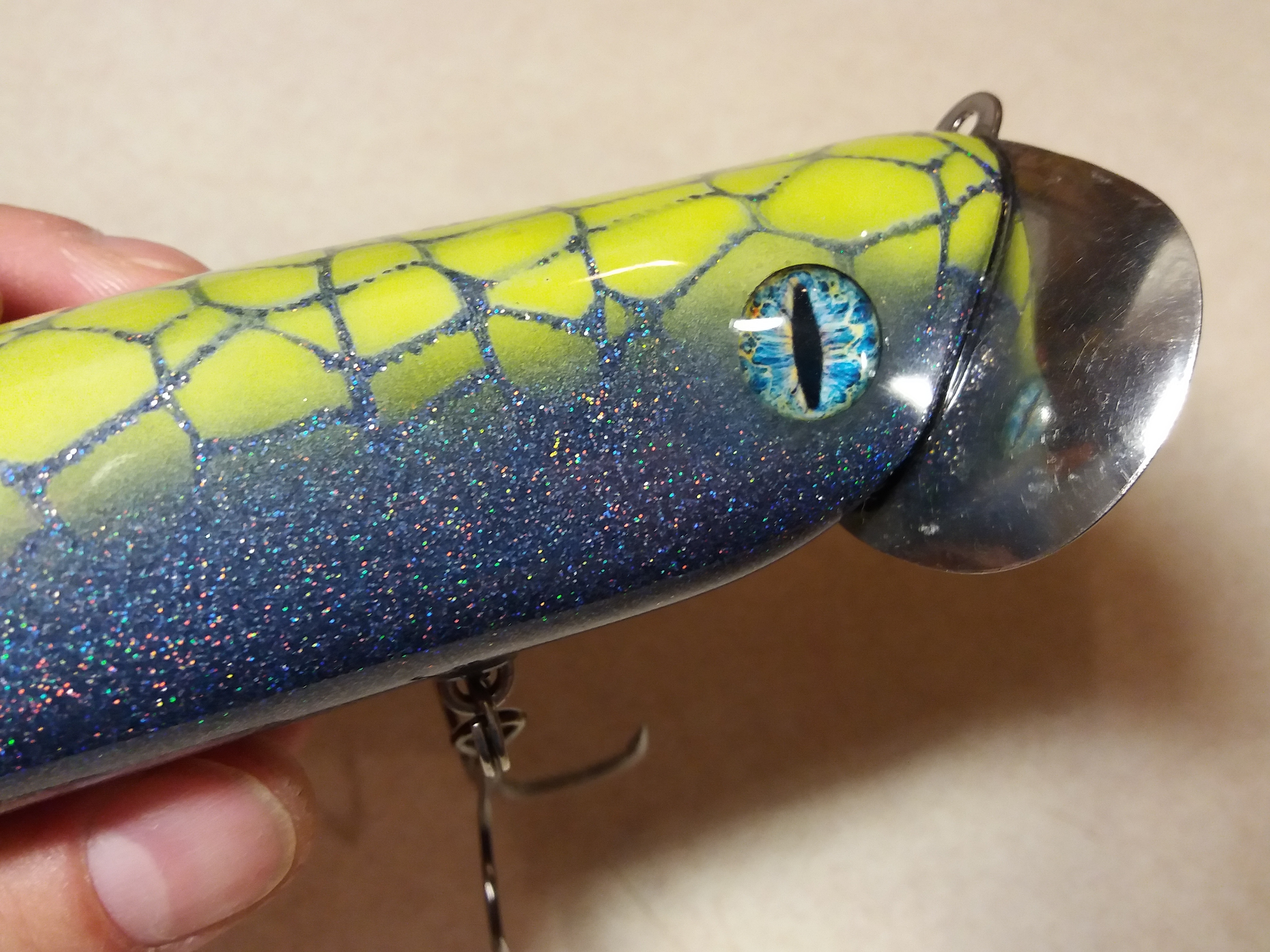 Ввиду того что во многих северных поездках стреляли разные поверхностные приманки вроде вокеров , глиссеров и прочих кроулеров , решил сделать вот такого Бакса (если в терминологии не запутался :oops: ) в стиле Олд Скулл :mrgreen: Очень громко плюхает лопостями и бурунит воду , к тому же имеет довольно громкую погремушку . Длина 13 см , вес 92 гр , материал корпуса ПВХ , лопасть американская из нержавейки .