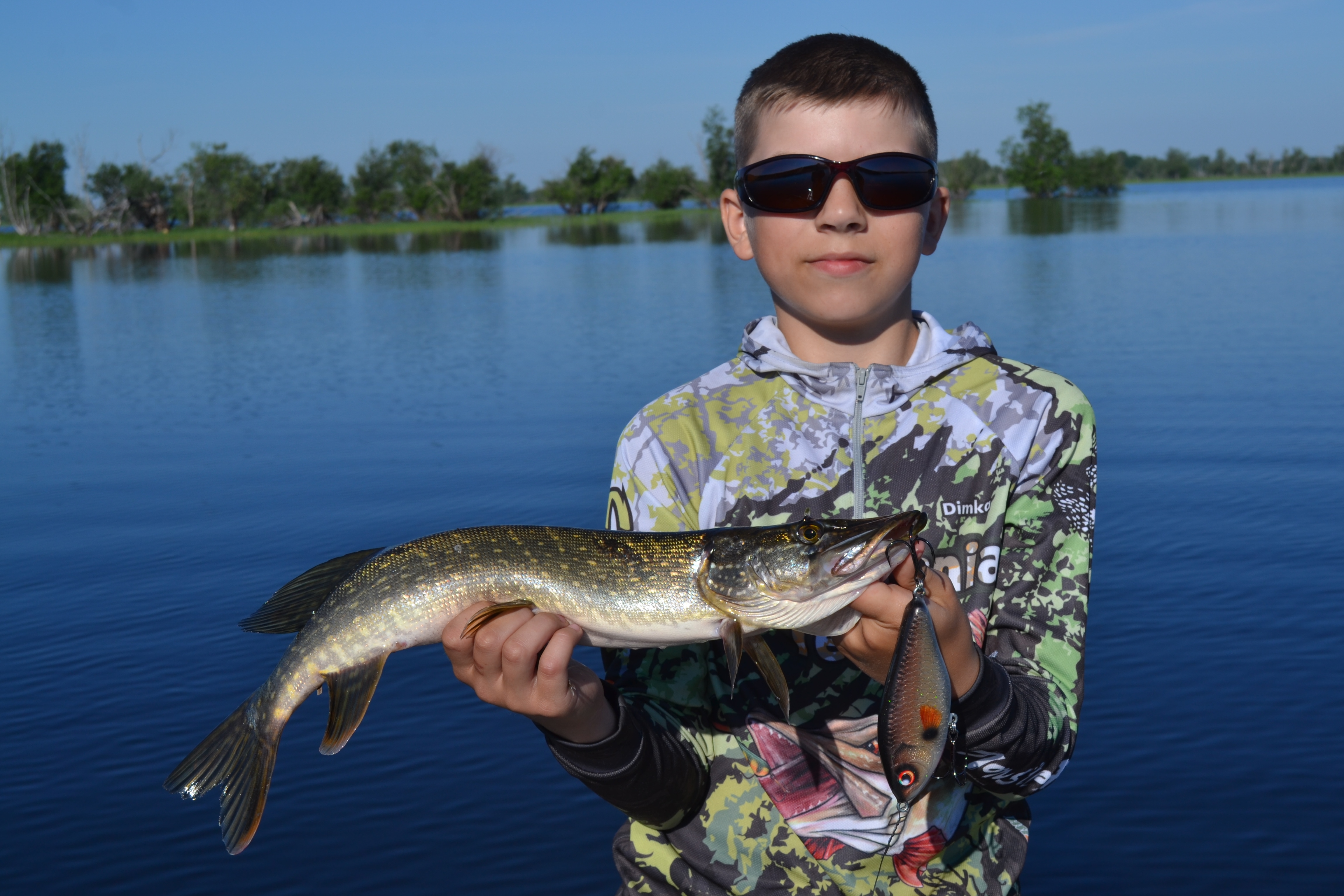 Выспавшись, поев, и выпив чашечку кофе с молоком, я с папой выплыли рыбачить, не прошло и 15 минут как я обловил подарочного джерка (Петр еще раз спасибо) И после этой щуки до обеда было еще пару поклевок, но они не принесли самих щук, зато у папы хорошо поклевало.