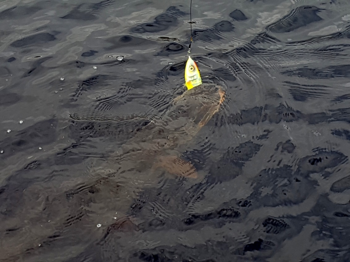 Приветствую! В воскресенье был на заливе. Наблюдал 9 выходов рыбы. Перепробовал джерки, резину. Менял цвет и размер. Перепробовал различные варианты проводки. Провожает до лодки и уходит. Пришлось поставить "смертельное оружие". Продолжительная пауза, легкое касание, подсечка