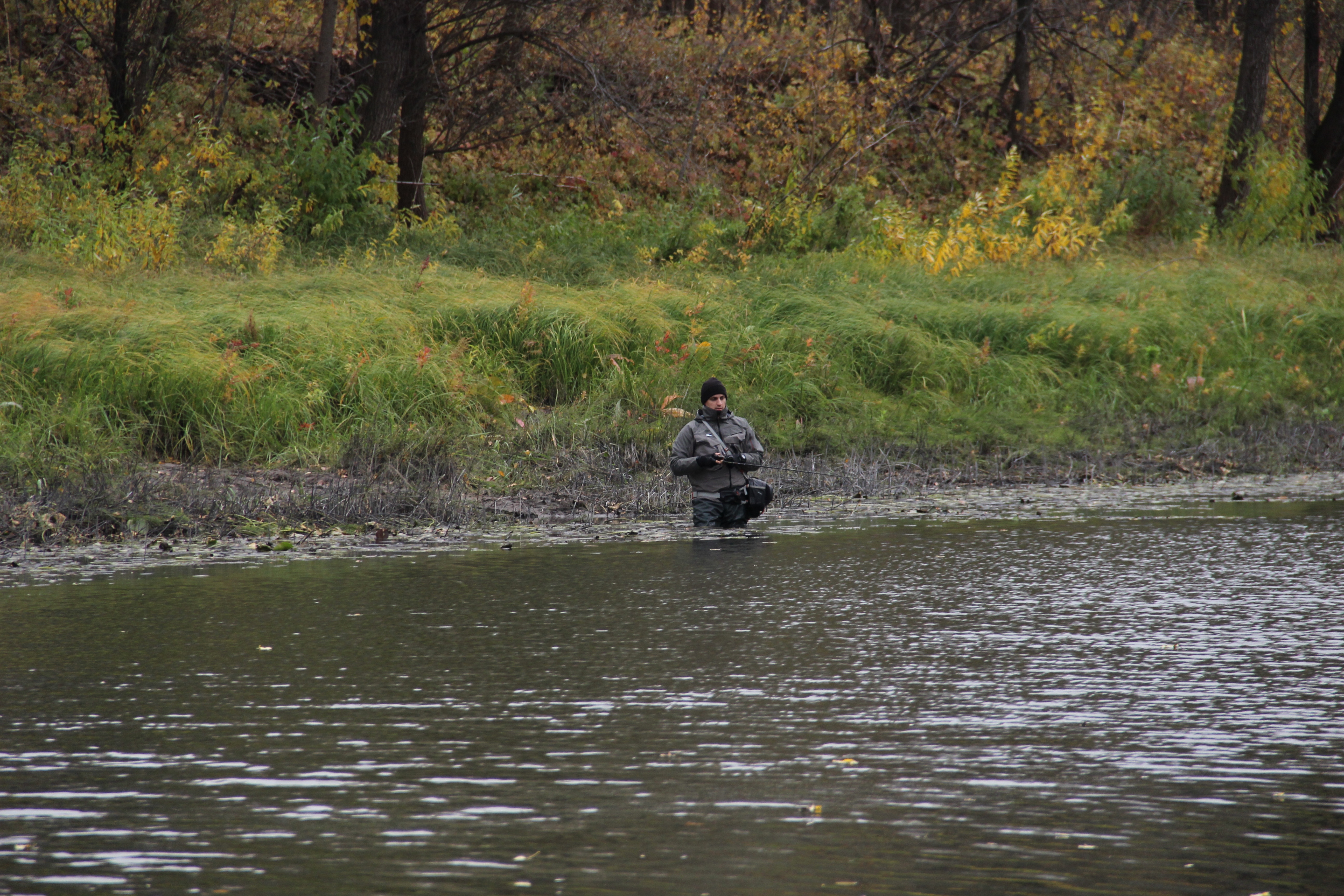 День второй печалька (((((( С утра решили поехать на Куприку всё тоже самое в плане условий ловли только протока чуть шире. С первого же заброса засаживаю того что с молнией в сетку наглухо