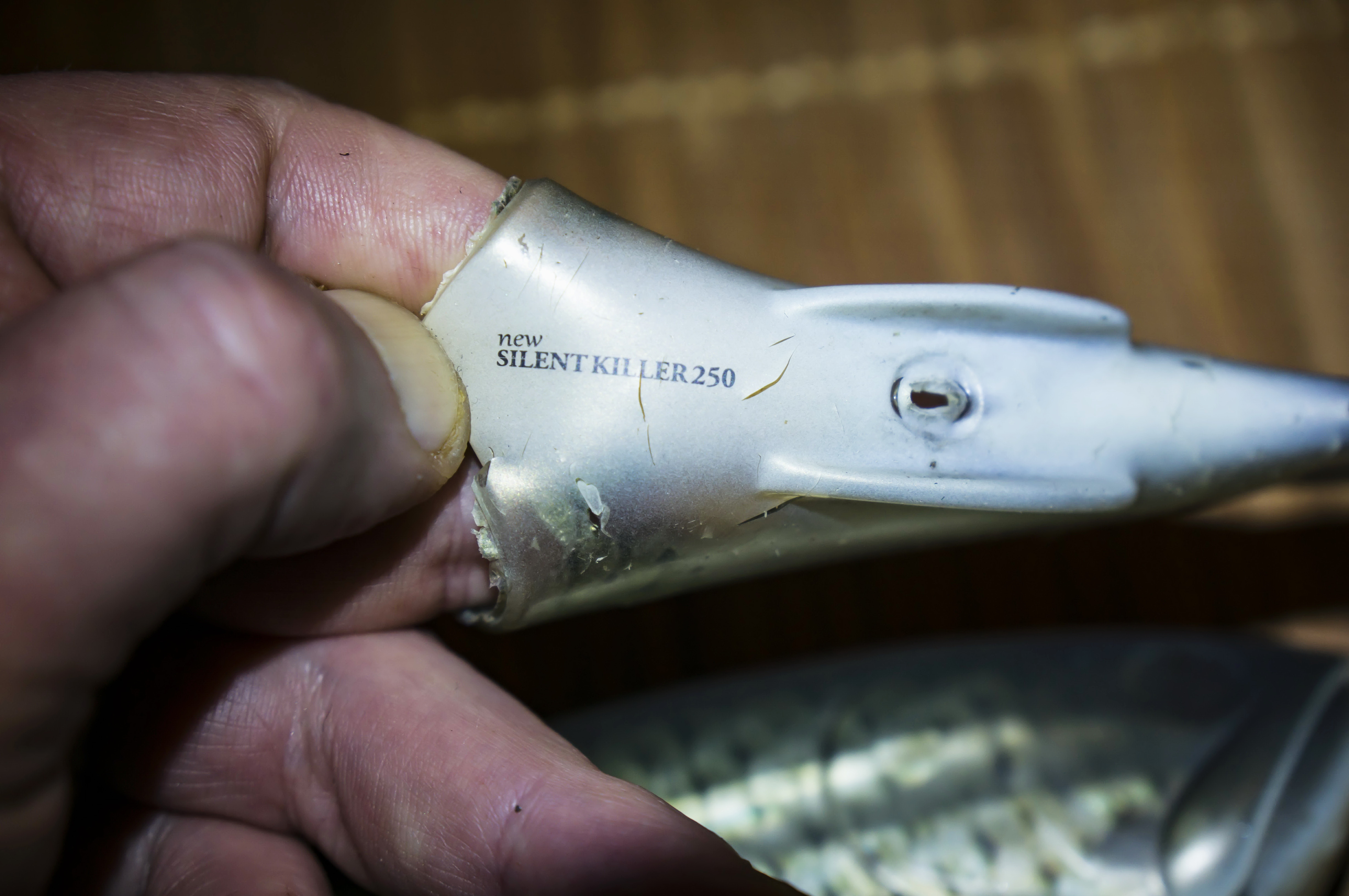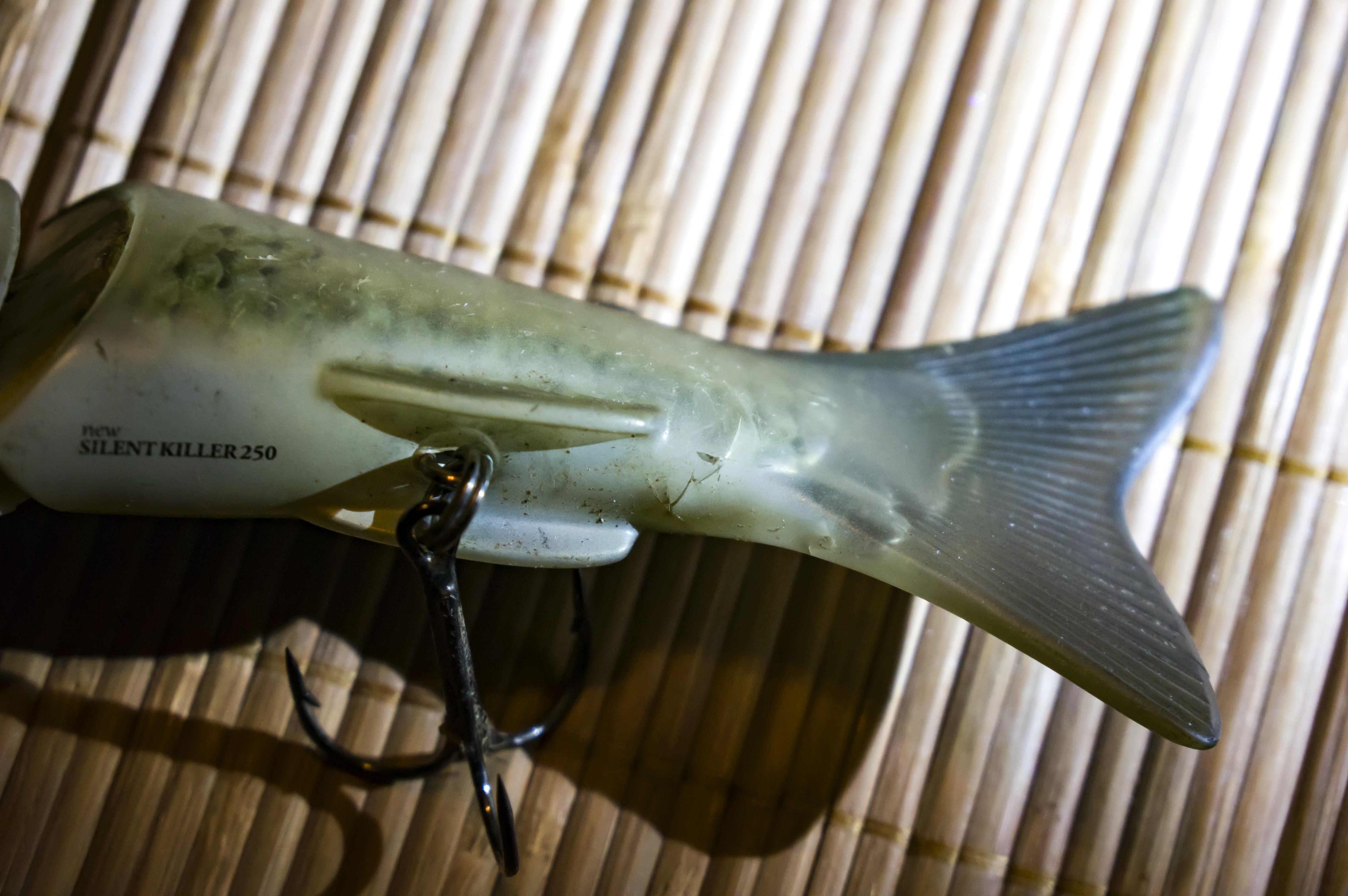 Наконец дошли руки. Более внимательный осмотр свимбейта вызвал новые и неутешительные мысли по поводу её дальнейшего использования.. Надежды на крепкое резиновое покрытие к моему сожалению не оправдались- очень много сквозных царапин! И это при поимке новой приманкой всего-то семи щук.